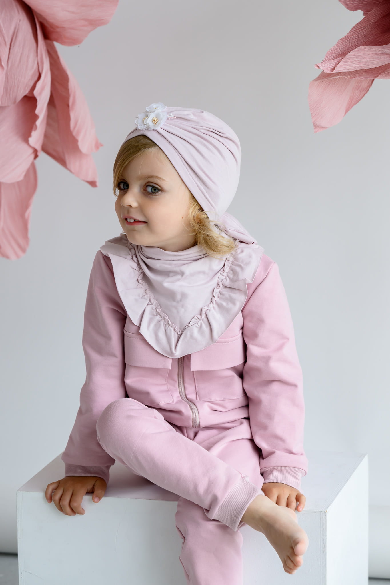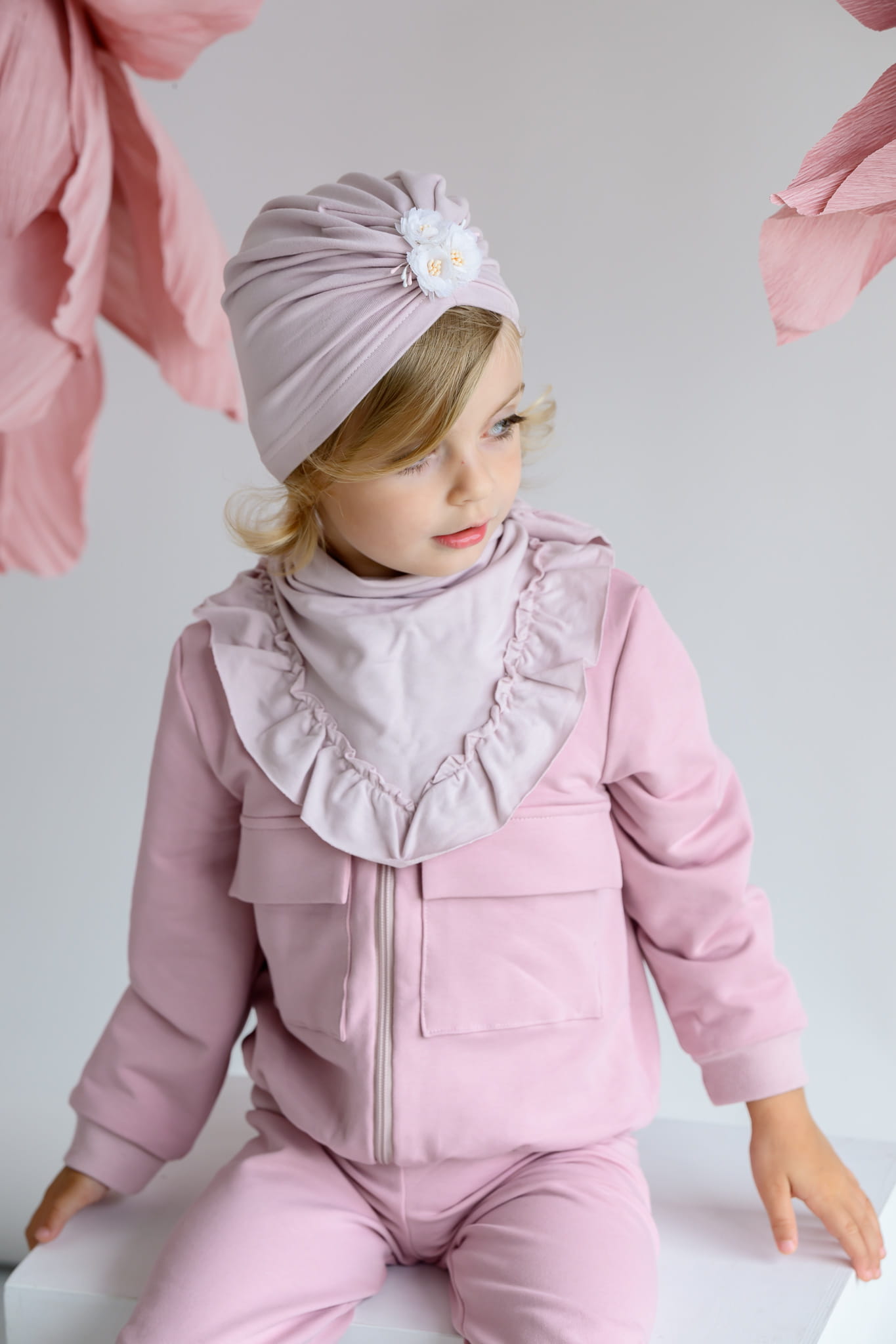 Niezwykle delikatny w dotyku turban na wiosnę dla małej damy.