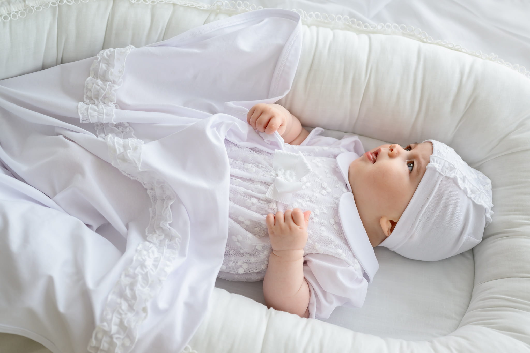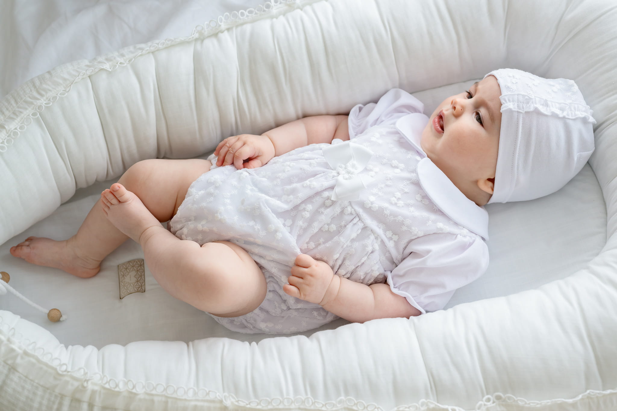 Delikatna czapka niemowlęca dla dziewczynki na wiosnę.