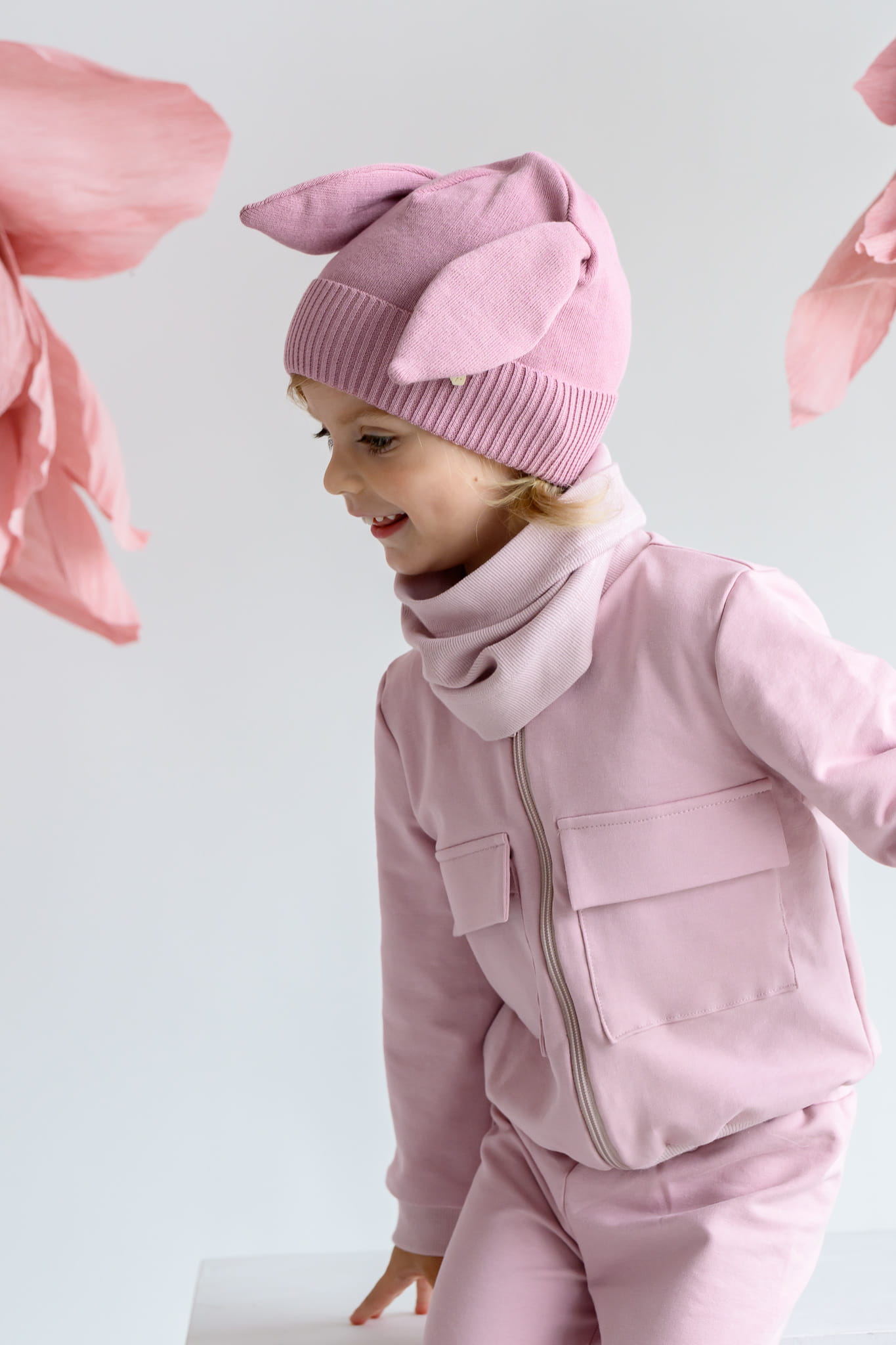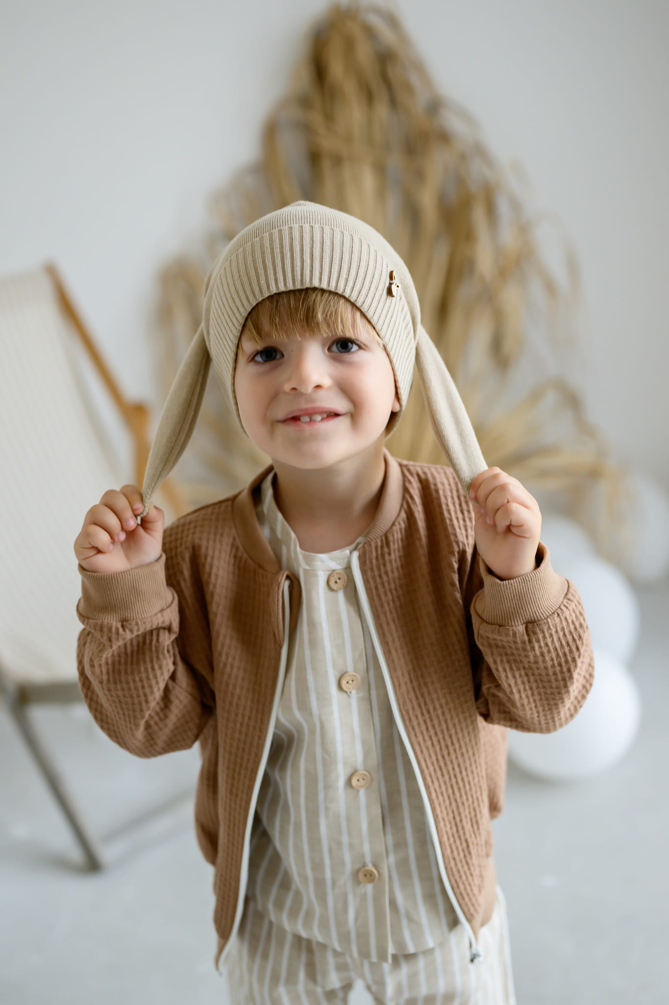 Bawełniana czapka dla dziecka NORI na wiosnę z króliczymi uszami.