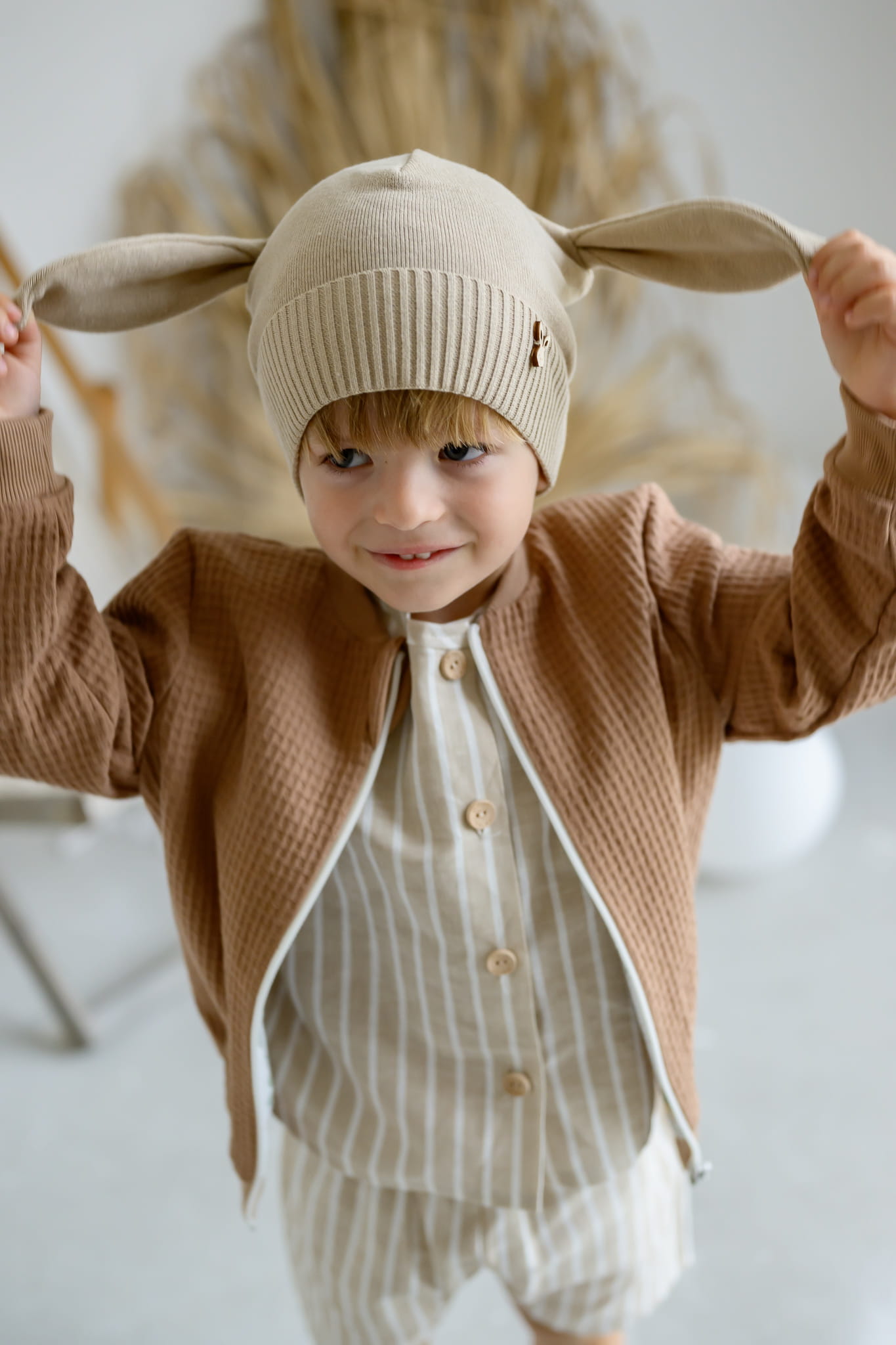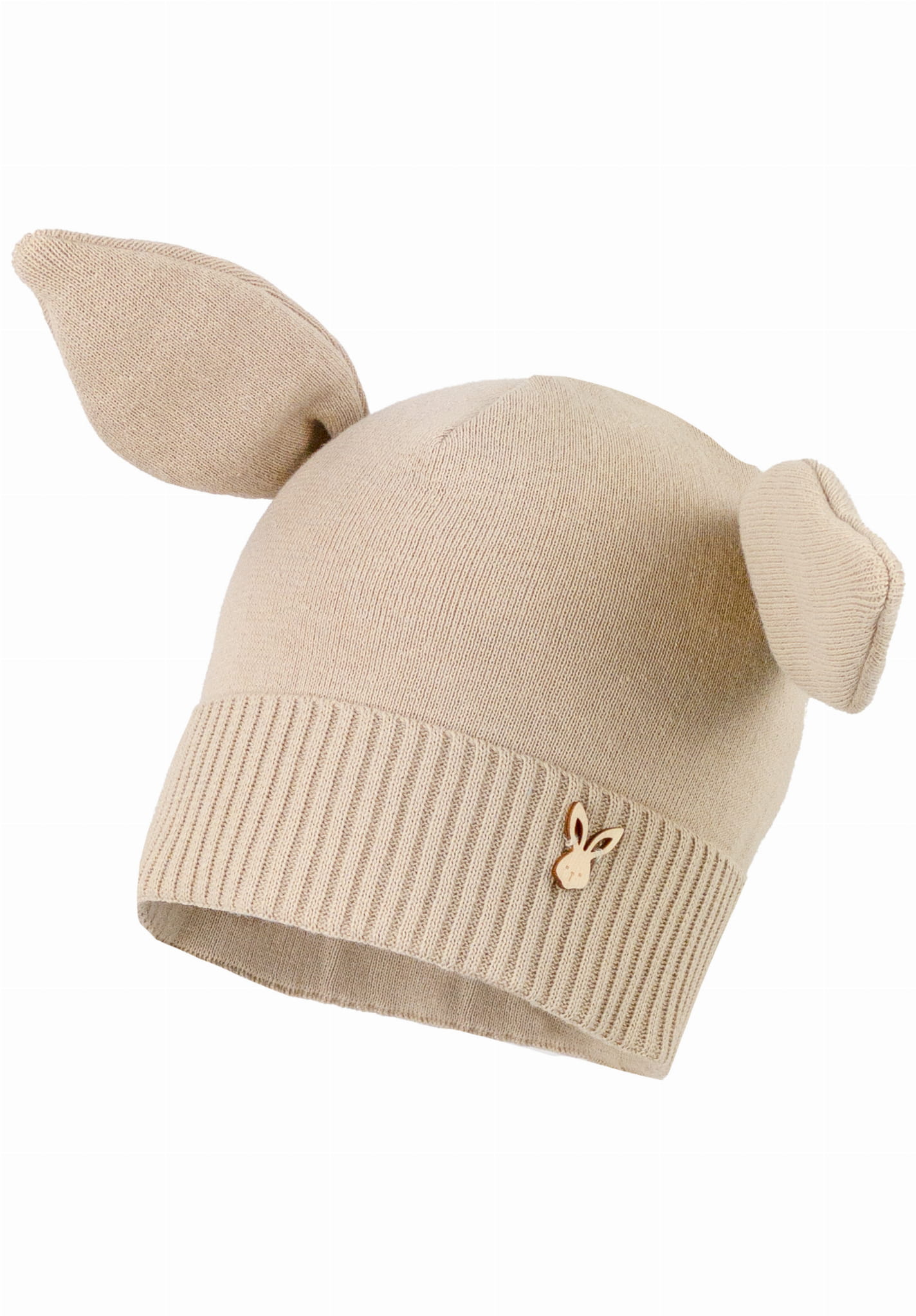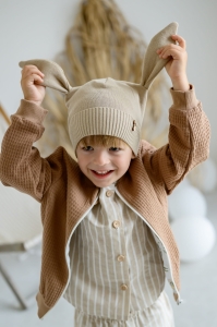 Bawełniana czapka dla dziecka NORI z króliczymi uszkami jasny beż
