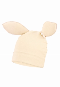Bawełniana czapka dla dziewczynki LEANDRA z króliczymi uszkami beż