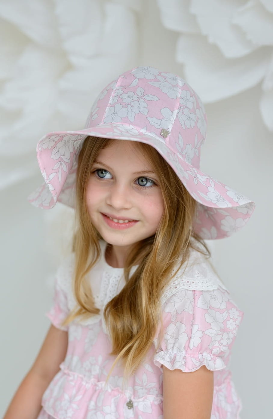 Piękny kapelusz na lato dla małej dziewczynki. Chroni twarz i głowę dziecka przed słońcem. Wygląda stylowo i nietuzinkowo.