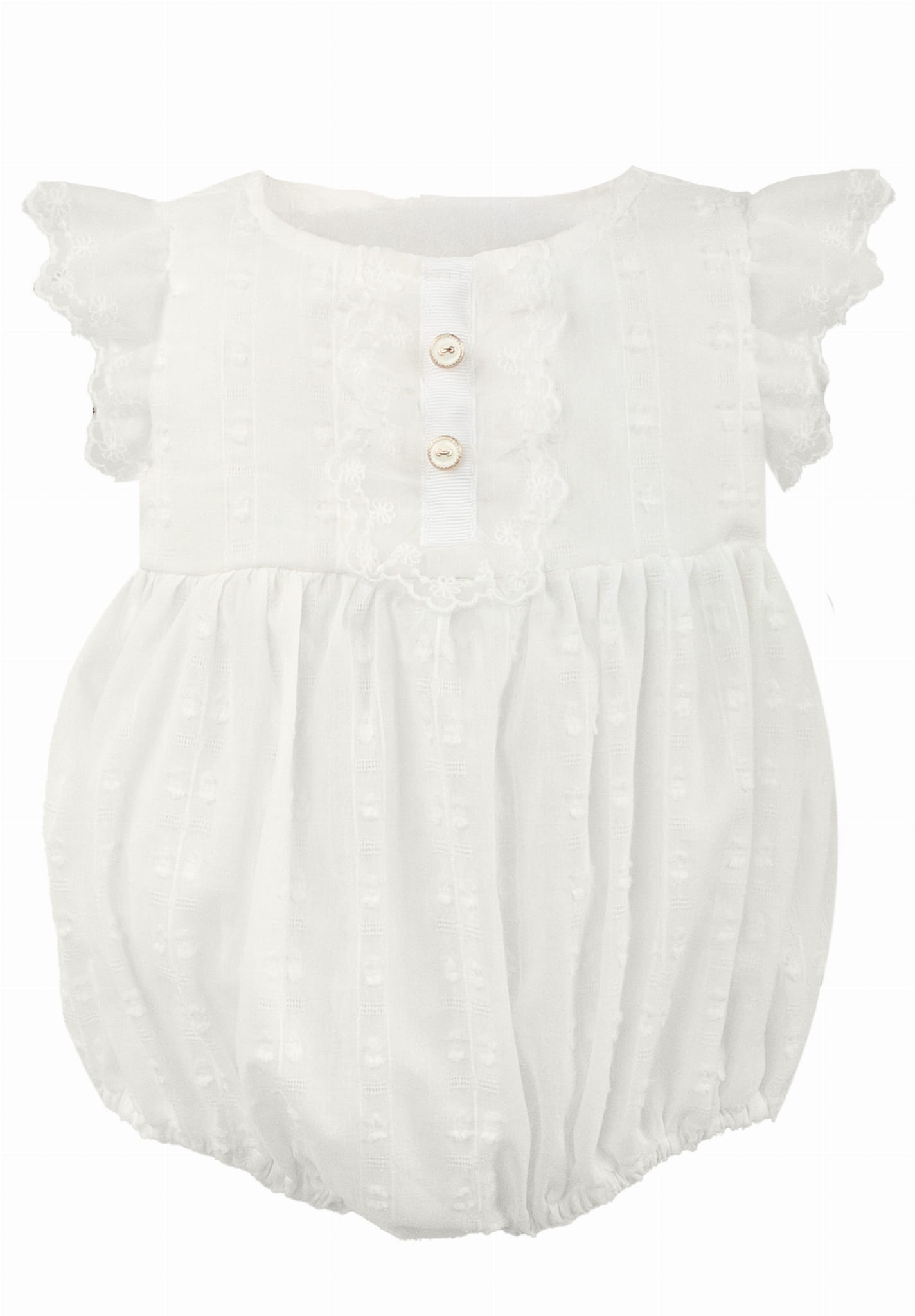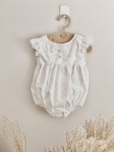 Niemowlęcy rampers dla dziewczynki. Zdobiony koronką oraz malutkimi guziczkami.