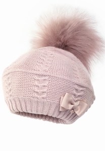 Beret ALDONZA dla dziewczynki pompon sztuczny pudrowy róż