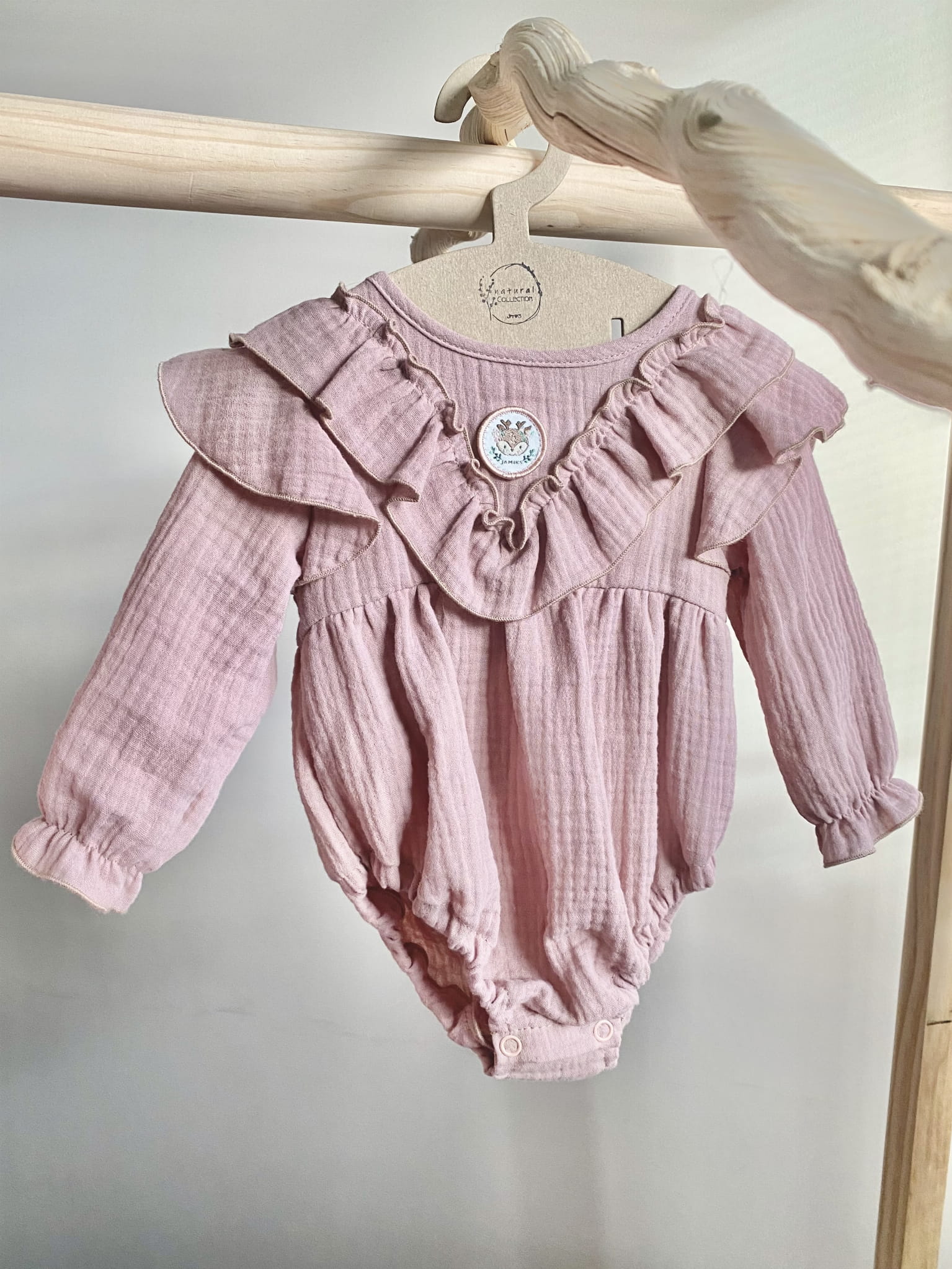 Body muślinowe RAJA organic długi rękaw Pink Sand
