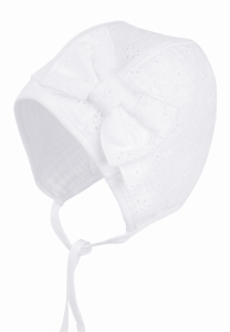 Bonetka niemowlęca muślinowa HANORA to uroczy dodatek do garderoby małych dziewczynek. Wykonana jest w całości z wysokiej jakości, organicznej bawełny, co gwarantuje delikatność i miękkość materiału oraz dbałość o wrażliwą skórę niemowlęcia. Charakterystycznym elementem bonetki jest kokarda, która dodaje uroku.