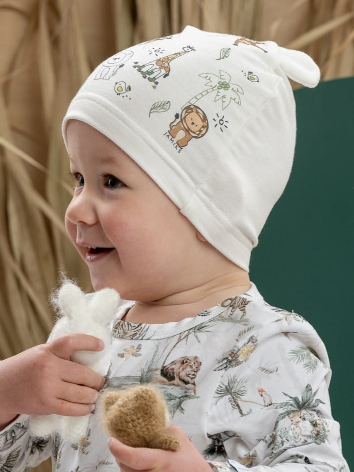 Chłopięca czapka bambusowa na wiosnę HAWI ekri