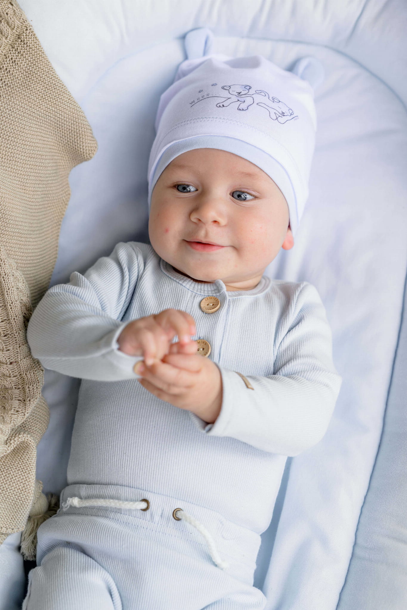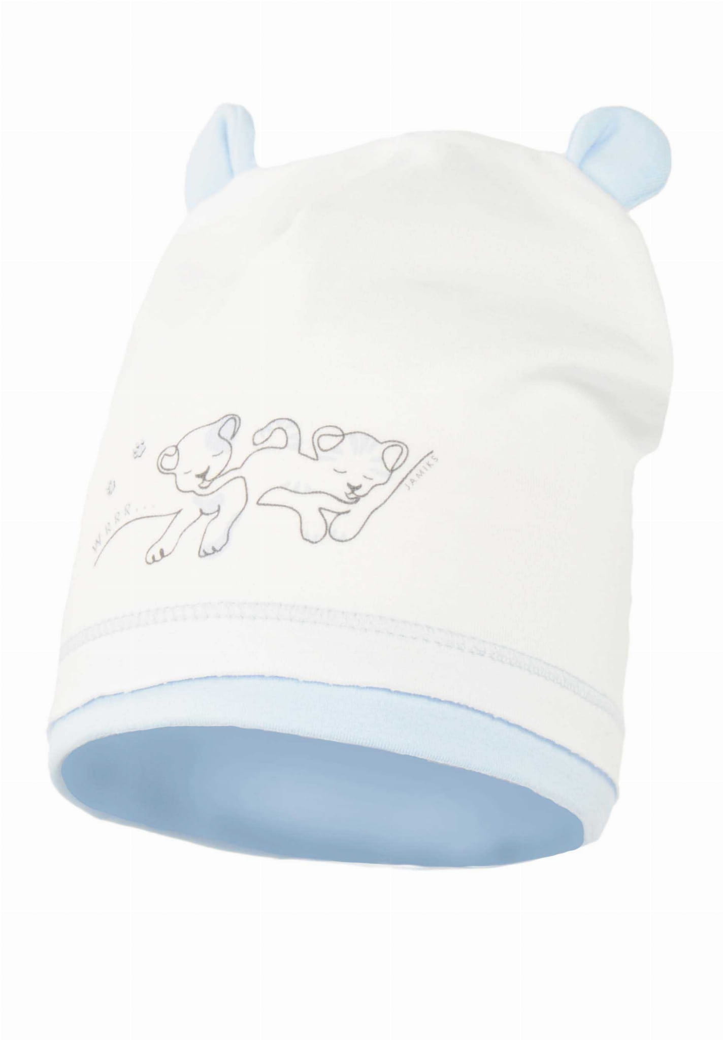 Bawełniana czapeczka dla małego chłopca z nadrukiem i uroczymi ozdobnymi uszkami ♥