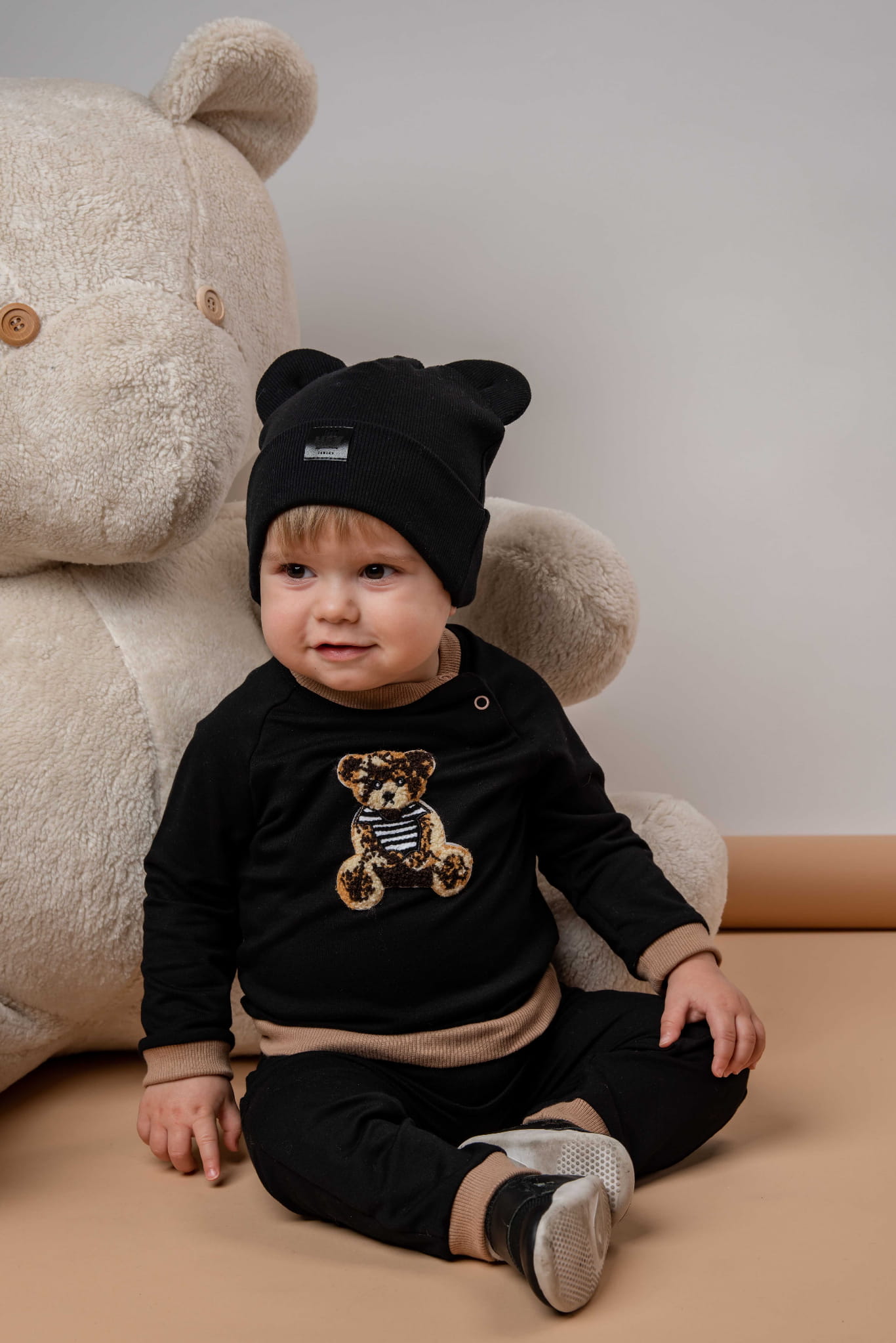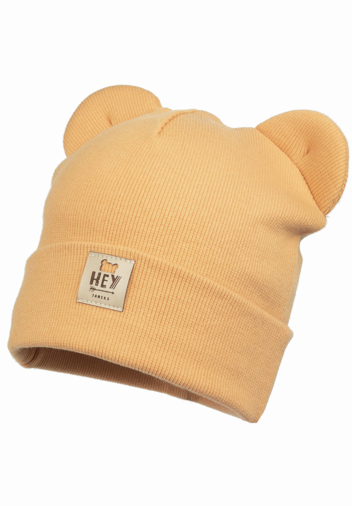 Piękna bawełniana czapka wykonana z bawełnianej dzianiny typu "prążek" z uszkami misia.