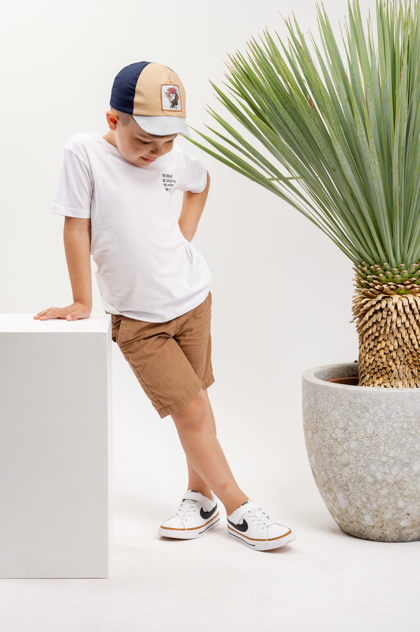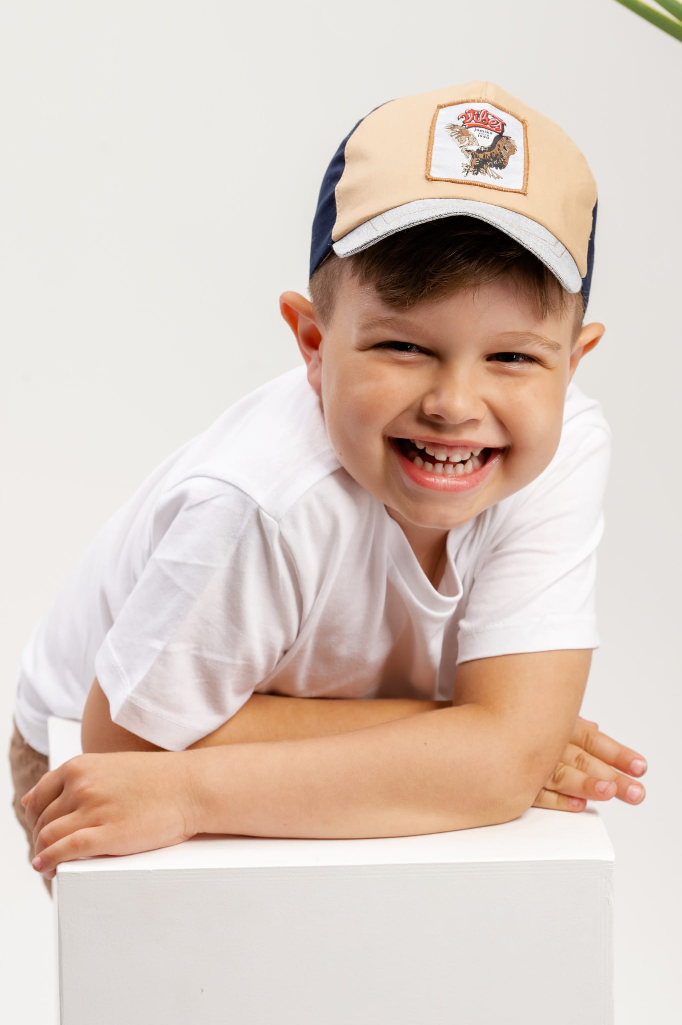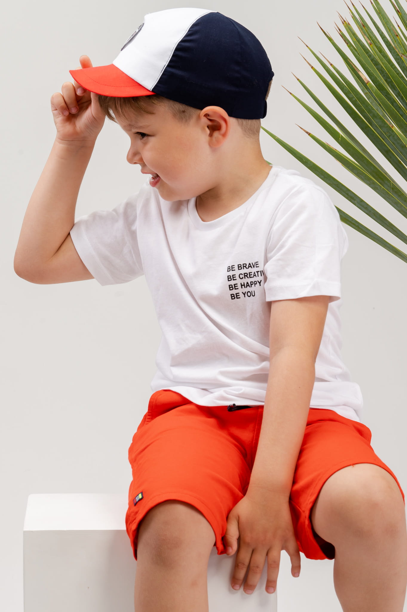 Chłopięca czapka z daszkiem na lato THIAGO Biały i Rudy