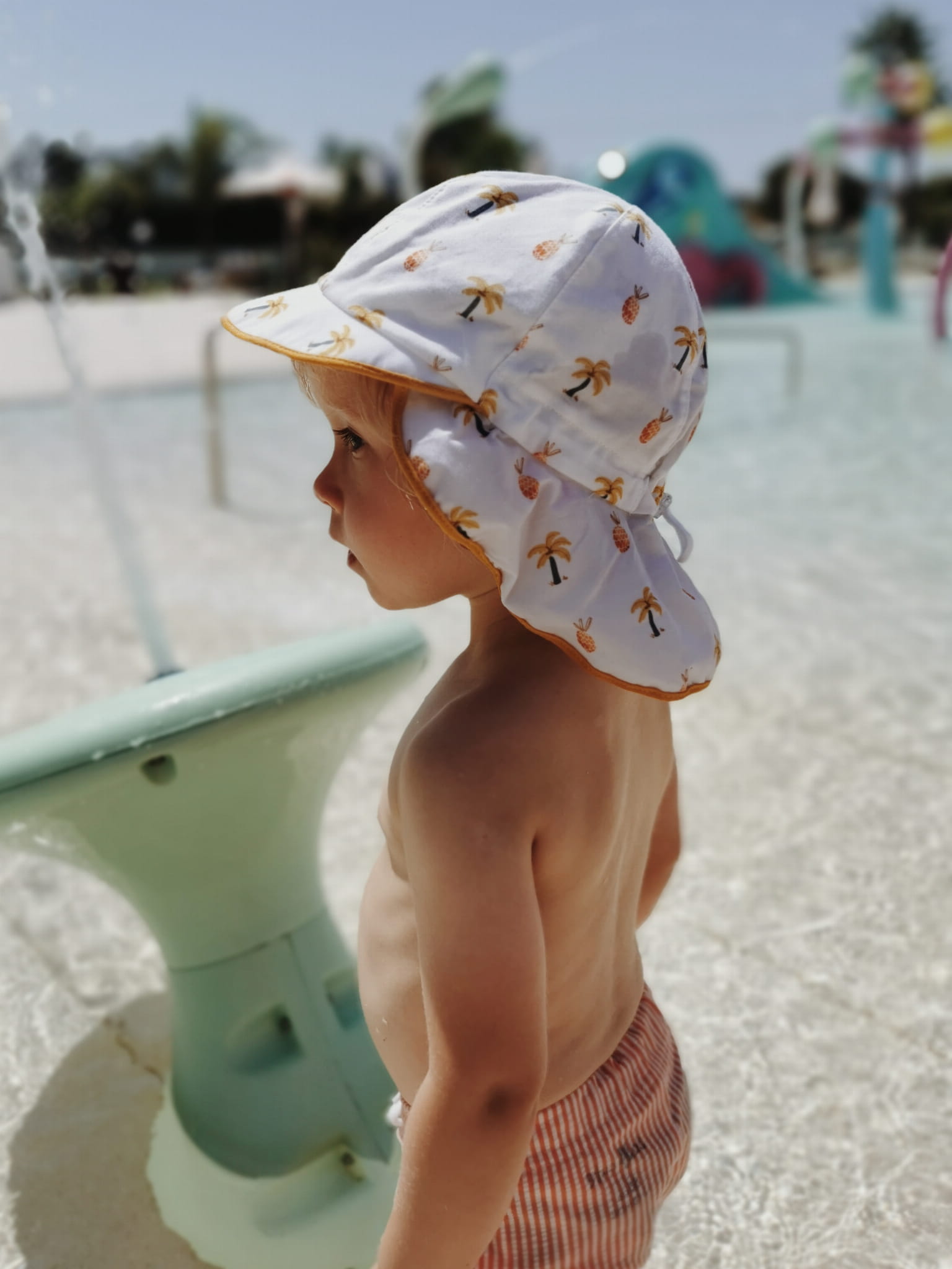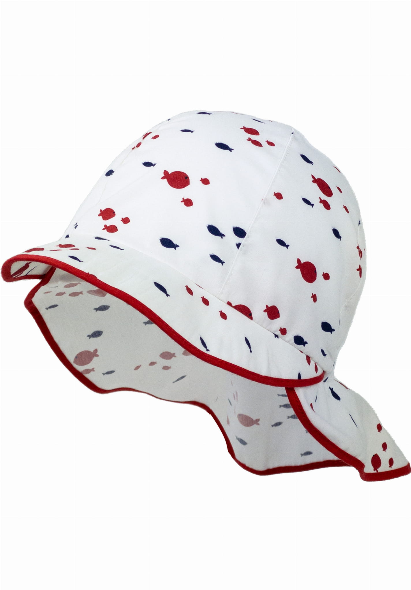 Chłopięcy kapelusz z ochroną karku na lato MIKA czerwone rybki