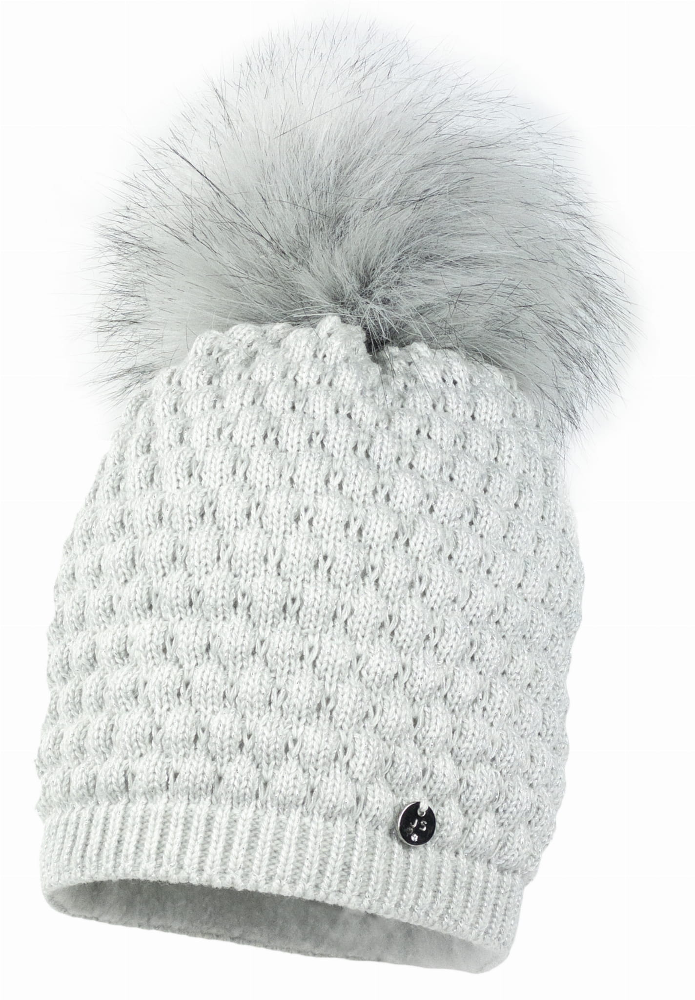 Czapka KADLIN dla dziewczynki pompon syntetyczny jasny popiel