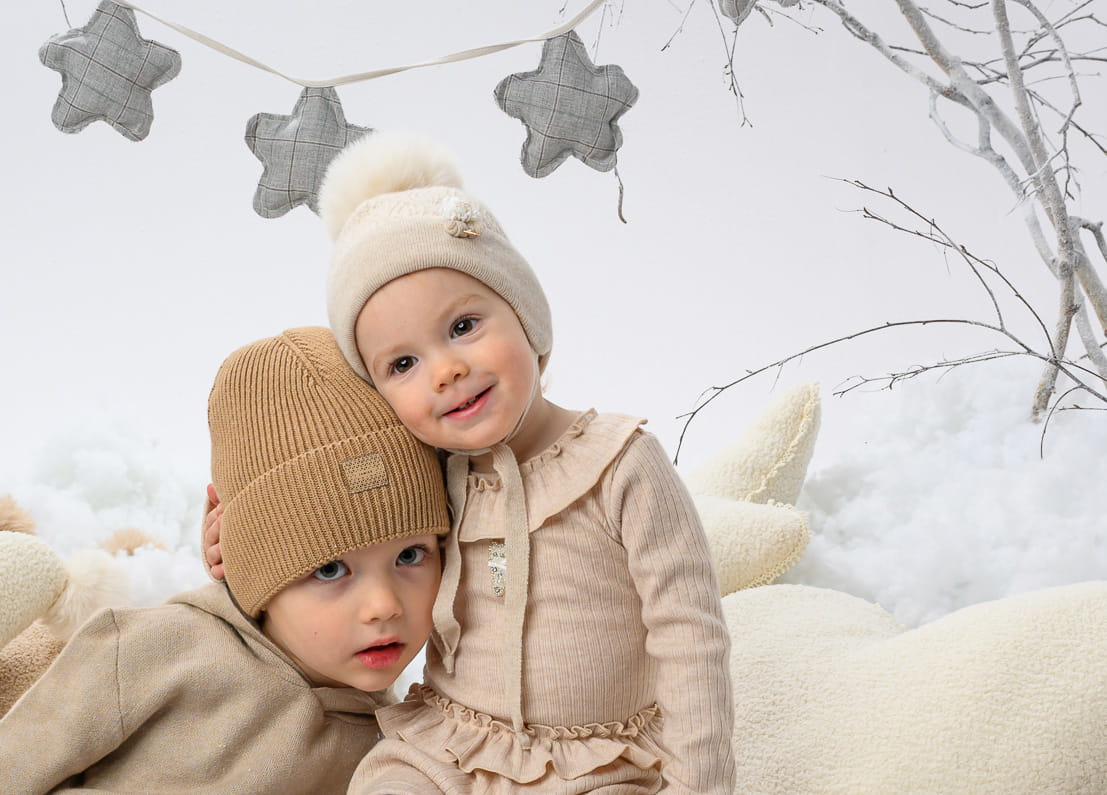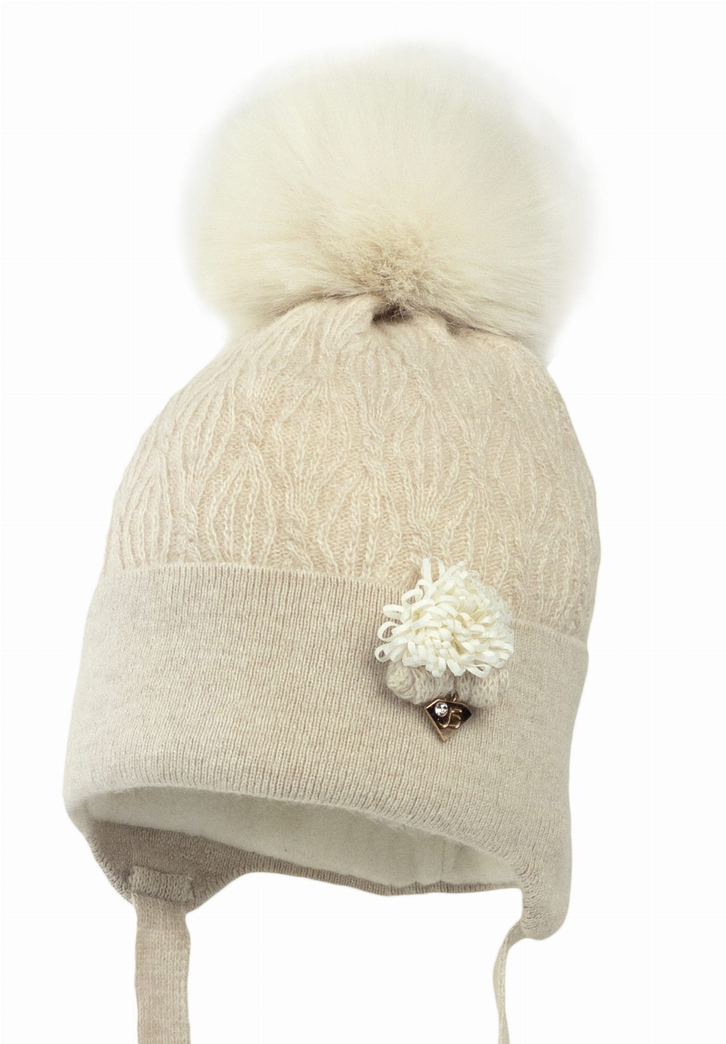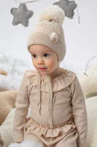 Czapka KAMILA dla dziewczynki z pomponem syntetycznym jasny beż