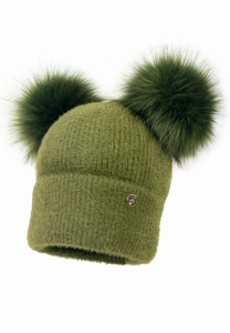 Czapka Mama & Córka ANEMORE pompony sztuczne khaki