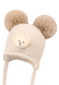 Czapka NAIROBI dla dziecka na zimę z dwoma pomponami ivory