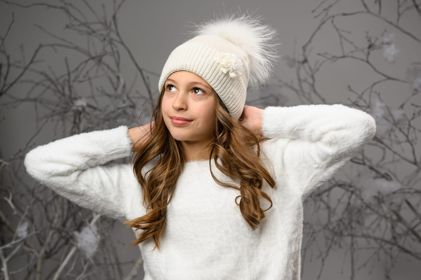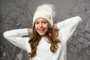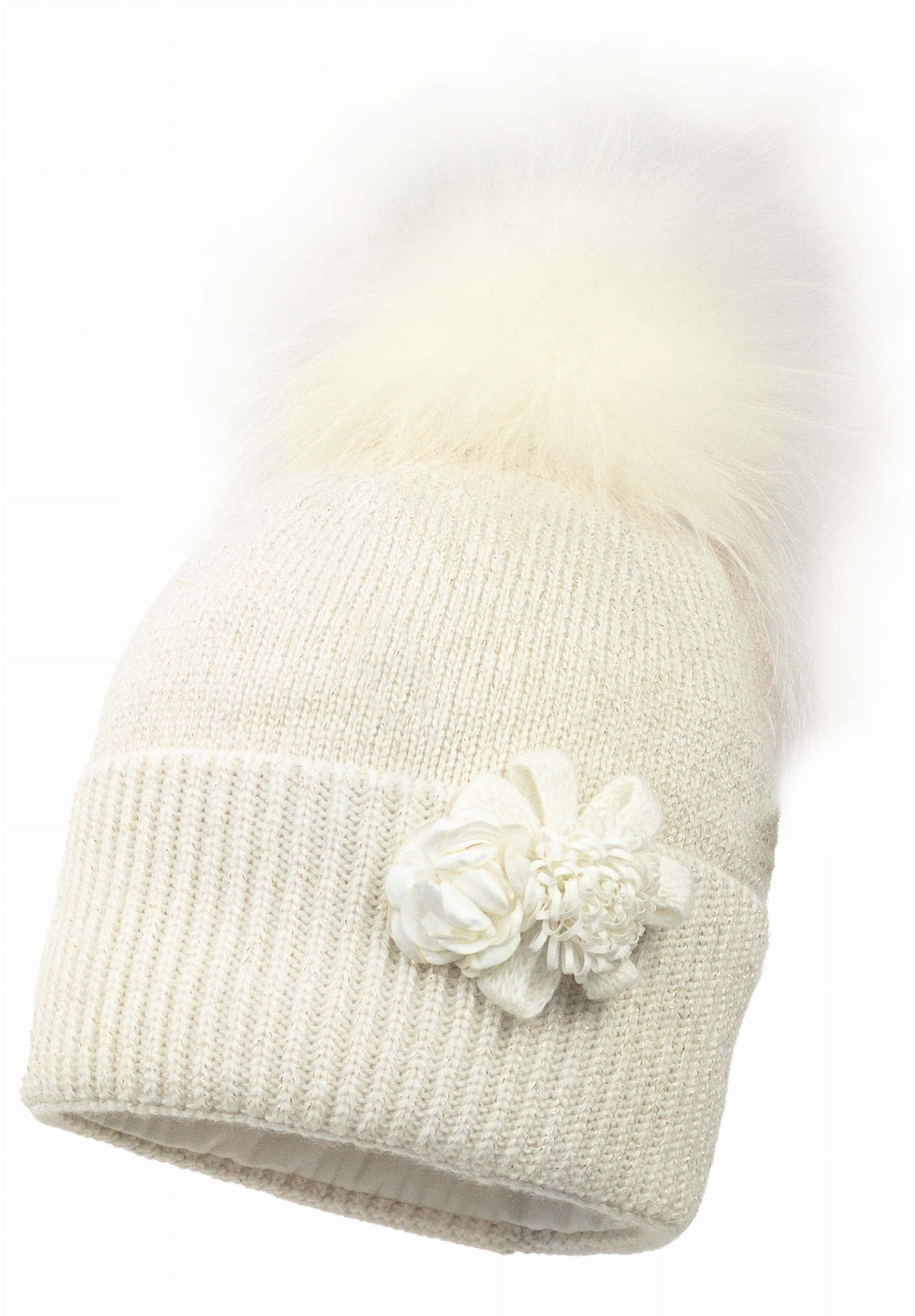 Czapka NANNA dla dziewczynki z pomponem ekri