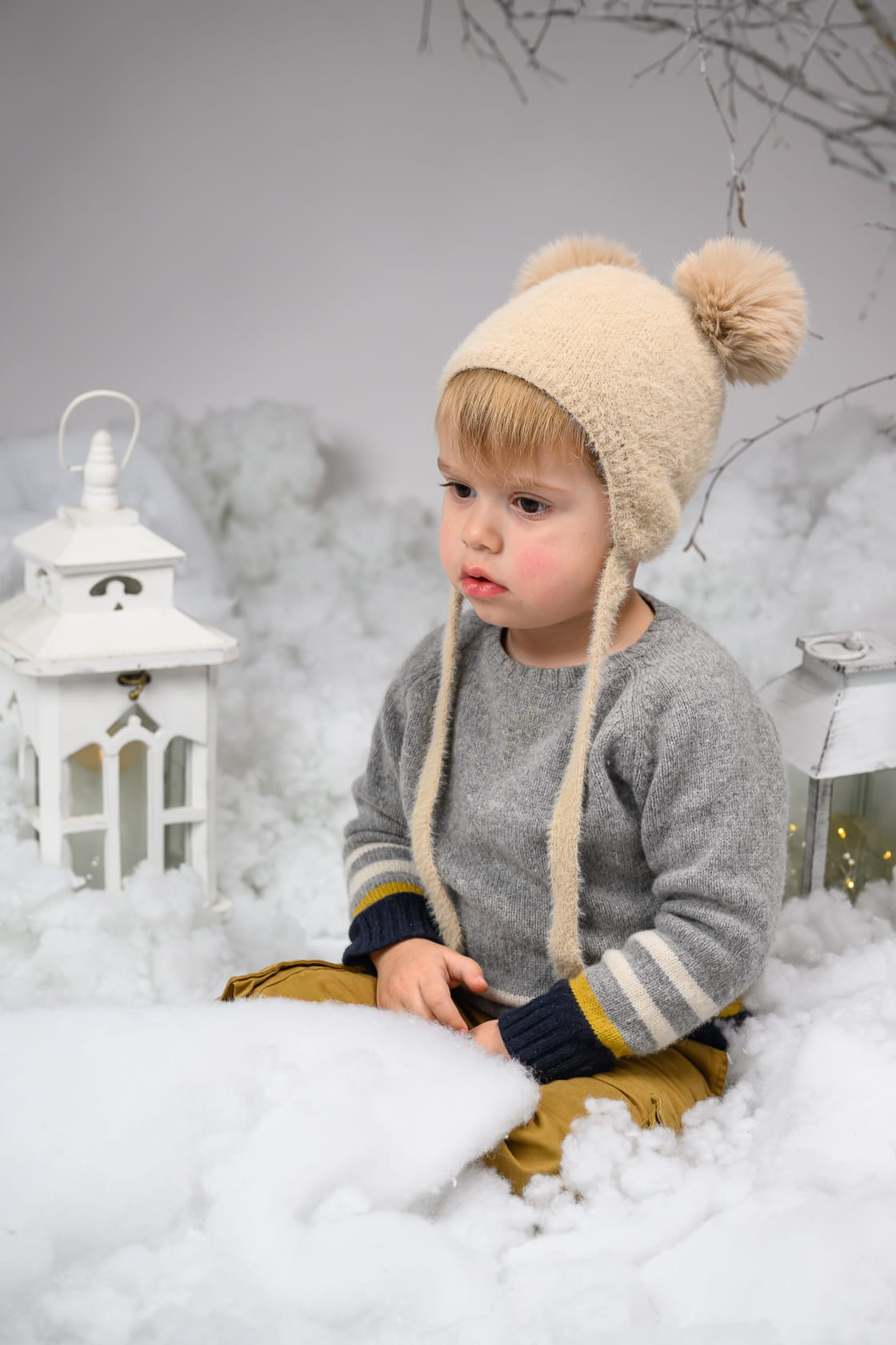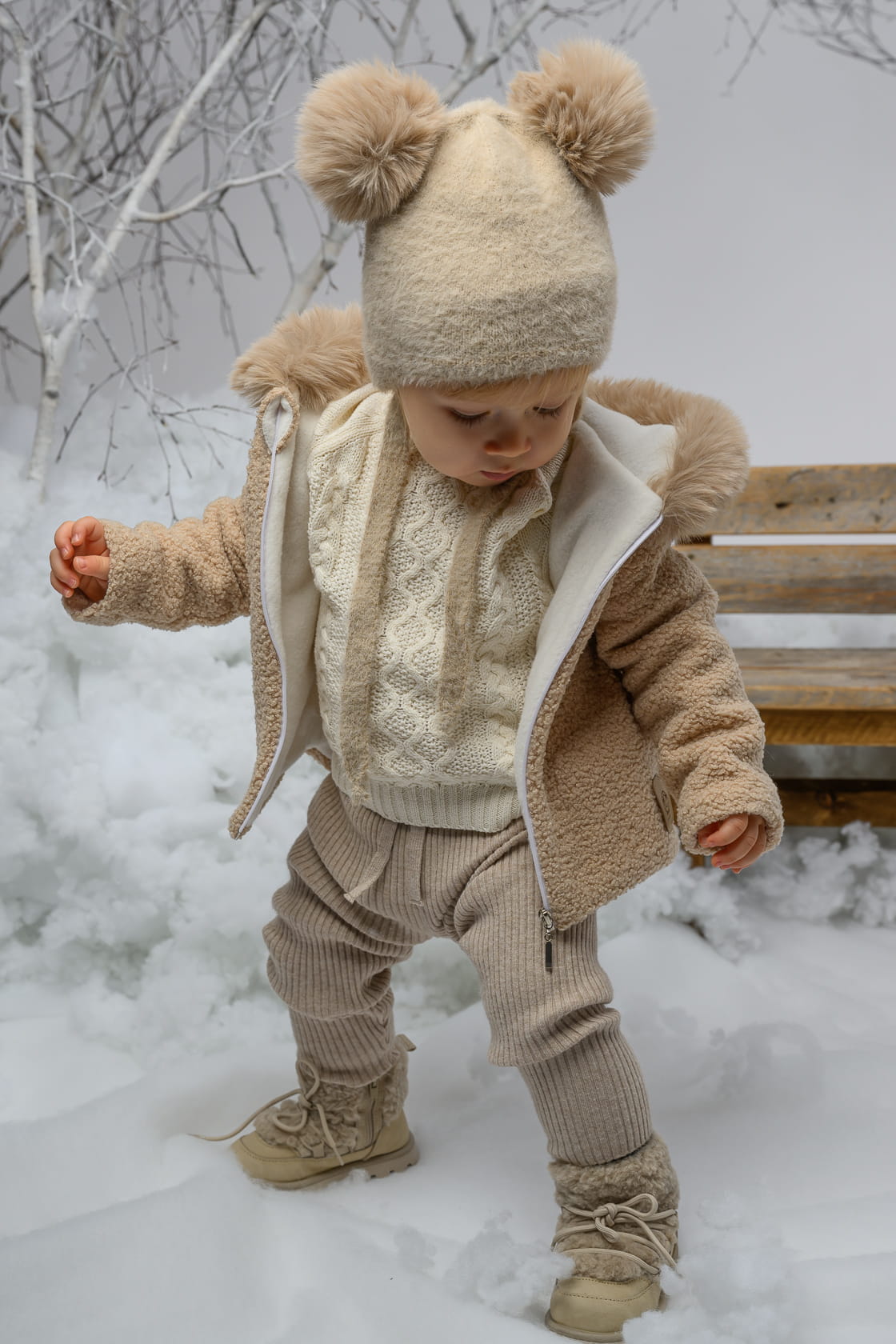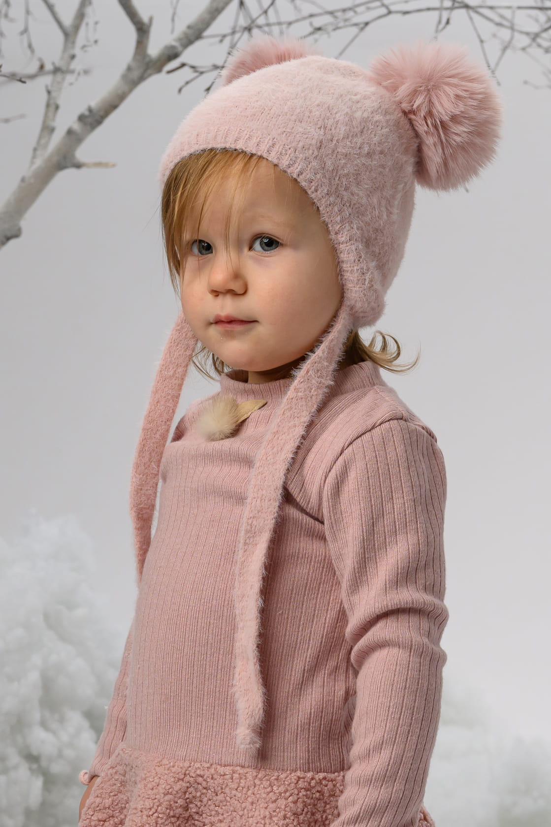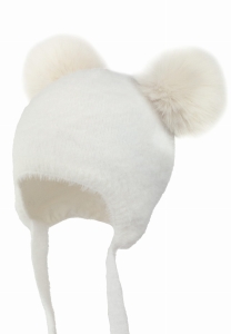 Czapka PERLITA dla dziecka z pomponami syntetycznymi ekri