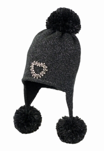 Czapka SINIKA merino dla dziewczynki z pomponami grafit