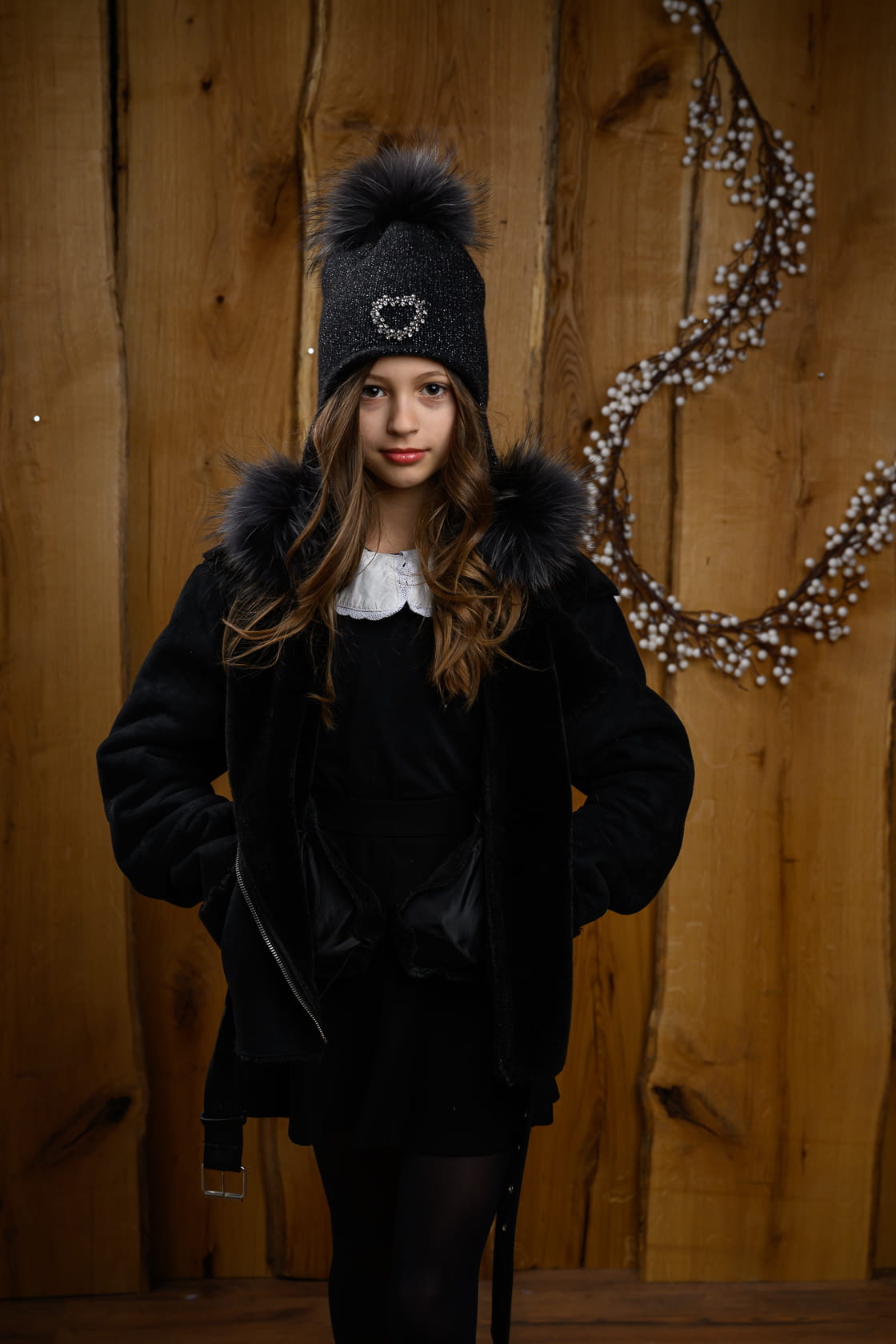 Czapka SINIKA to elegancka i urokliwa propozycja dla dziewczynki. Jej wierzch został stworzony z wysokiej jakości mieszanki materiałów, w tym 68% wełny merinos, 18% poliamidu, 12% wiskozy oraz 2% nić metalizowana, co gwarantuje ciepło, wygodę i subtelny blask. Dodatkowo, podszewka wykonana jest w całości z bawełny, co zapewnia miękkość i komfort w noszeniu. Ozdobne pompony wykonane z przędzy dodają czapce wyjątkowego uroku i stylu.