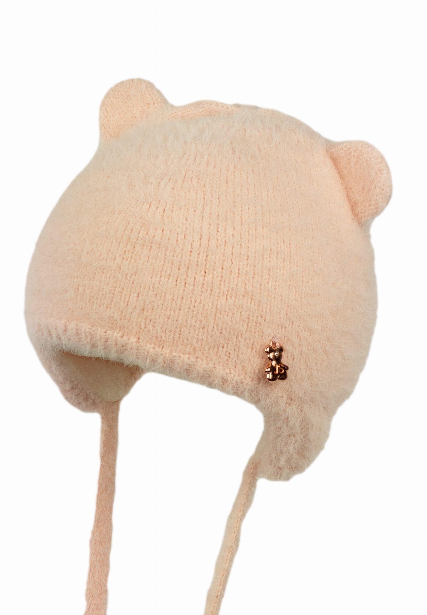 Czapka SONOJA z uszkami misia dla dziewczynki morela