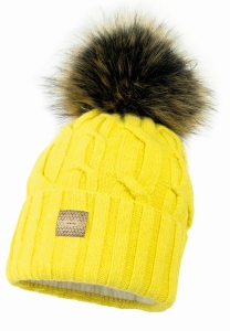 Czapka VALDIS z pomponem syntetycznym cytryna