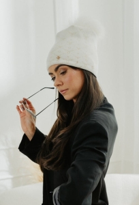 Czapka damska GITTE na zimę z pomponem ekri