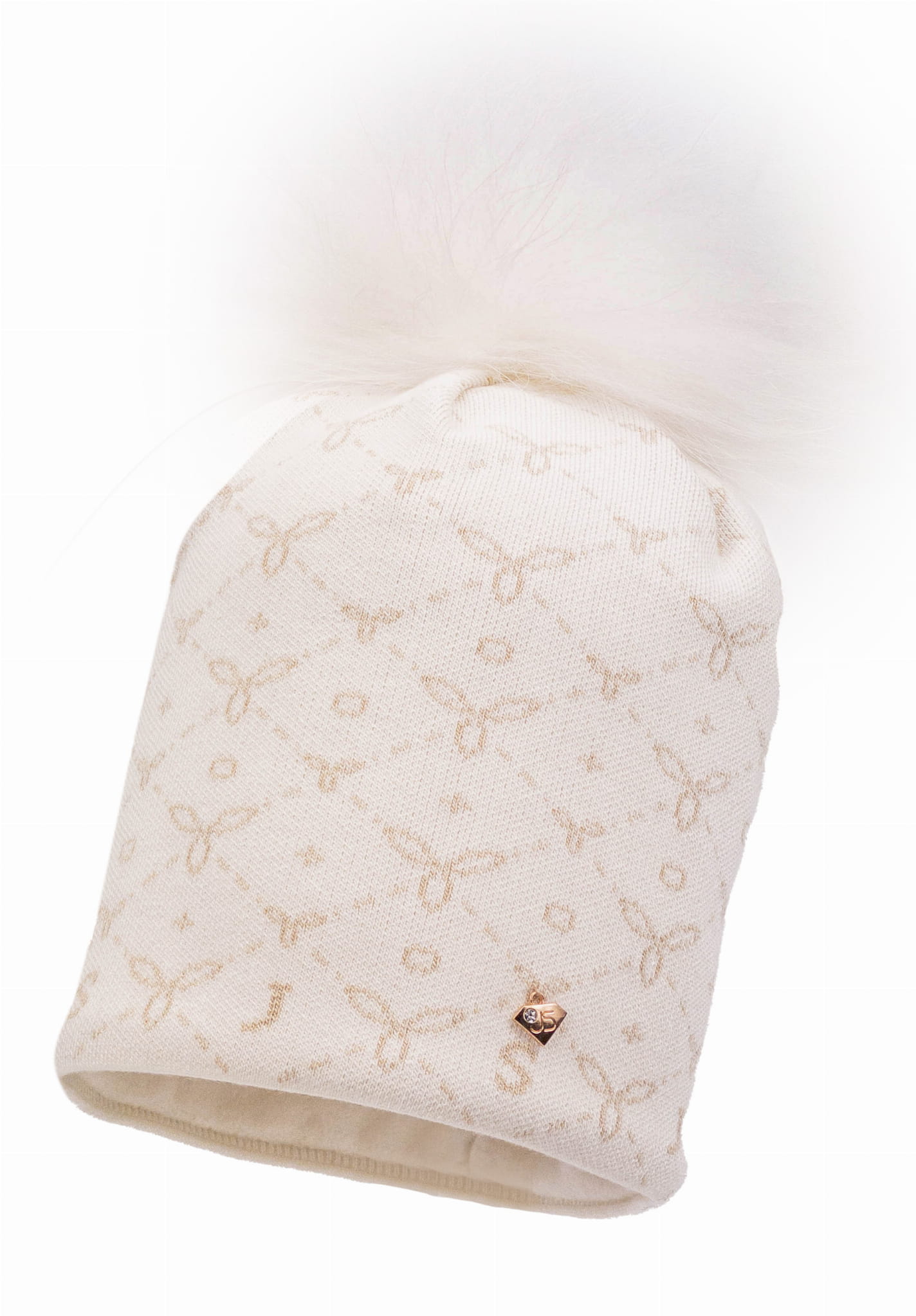 Wyjątkowa czapka damska GITTE, idealna na zimowe dni. Ta stylowa i funkcjonalna czapka wyróżnia się interesującym wzorem oraz subtelną zawieszką, która dodaje jej elegancji. Naturalny pompon stanowi modny akcent, który przyciąga uwagę.
