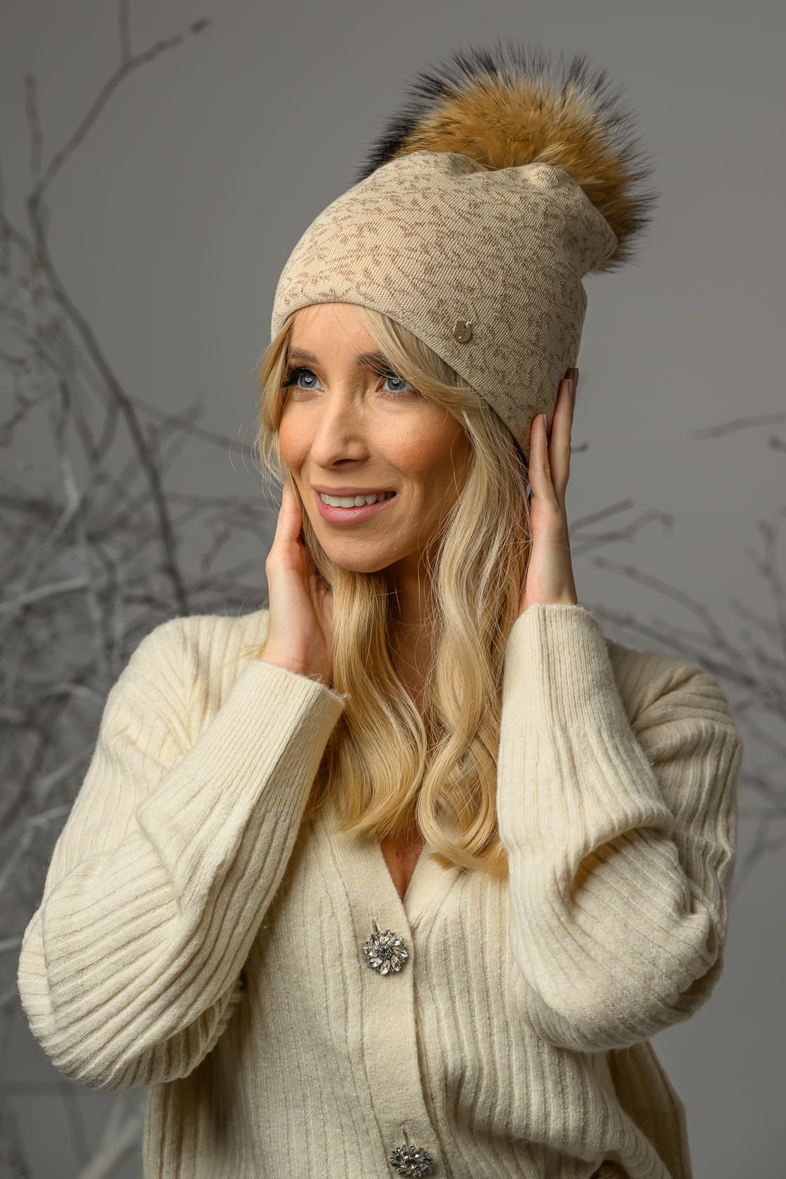Czapka damska IRJA z pomponem jasny beż