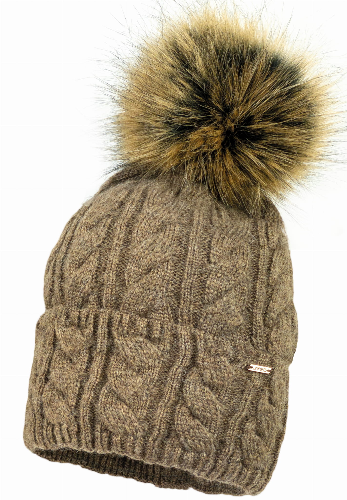 Czapka damska MARION pompon sztuczny brąz