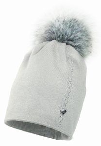 Czapka damska NATOYA pompon sztuczny jasny popiel