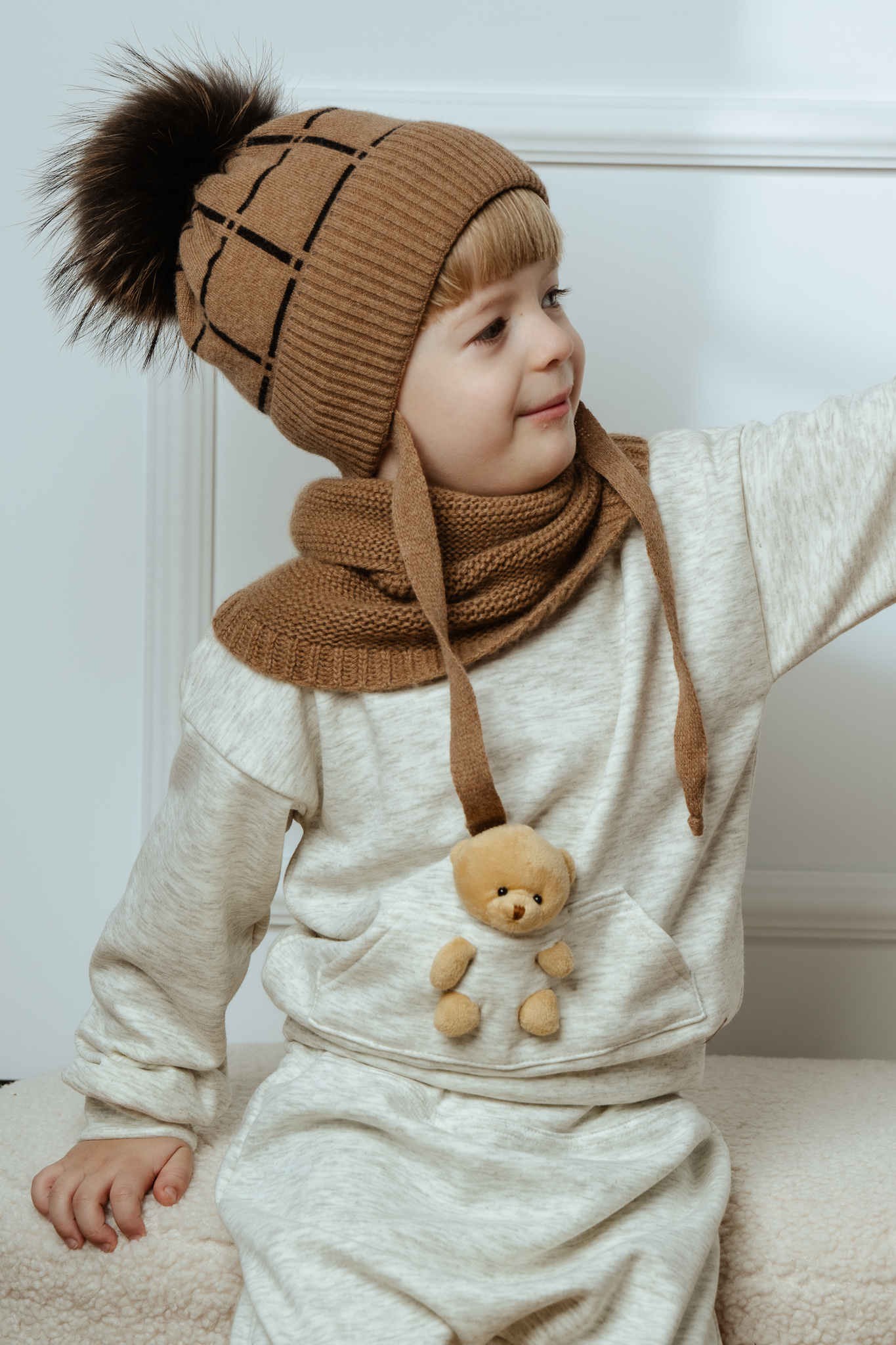 Sztuczny pompon nadaje czapce dekoracyjnego charakteru, a wiązanie pod szyją gwarantuje stabilne dopasowanie, chroniąc przed wiatrem i chłodem. DAGGET idealnie sprawdzi się podczas spacerów i zimowych zabaw na świeżym powietrzu.