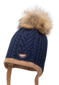 Czapka zimowa BROCK dla chłopca z wełny merino, z pomponem i wiązaniem pod szyją, z bawełnianą podszewką.