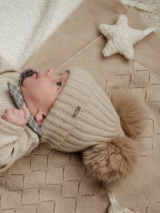 Czapka dla dziecka CALDER merino z dwoma pomponami na zimę beż