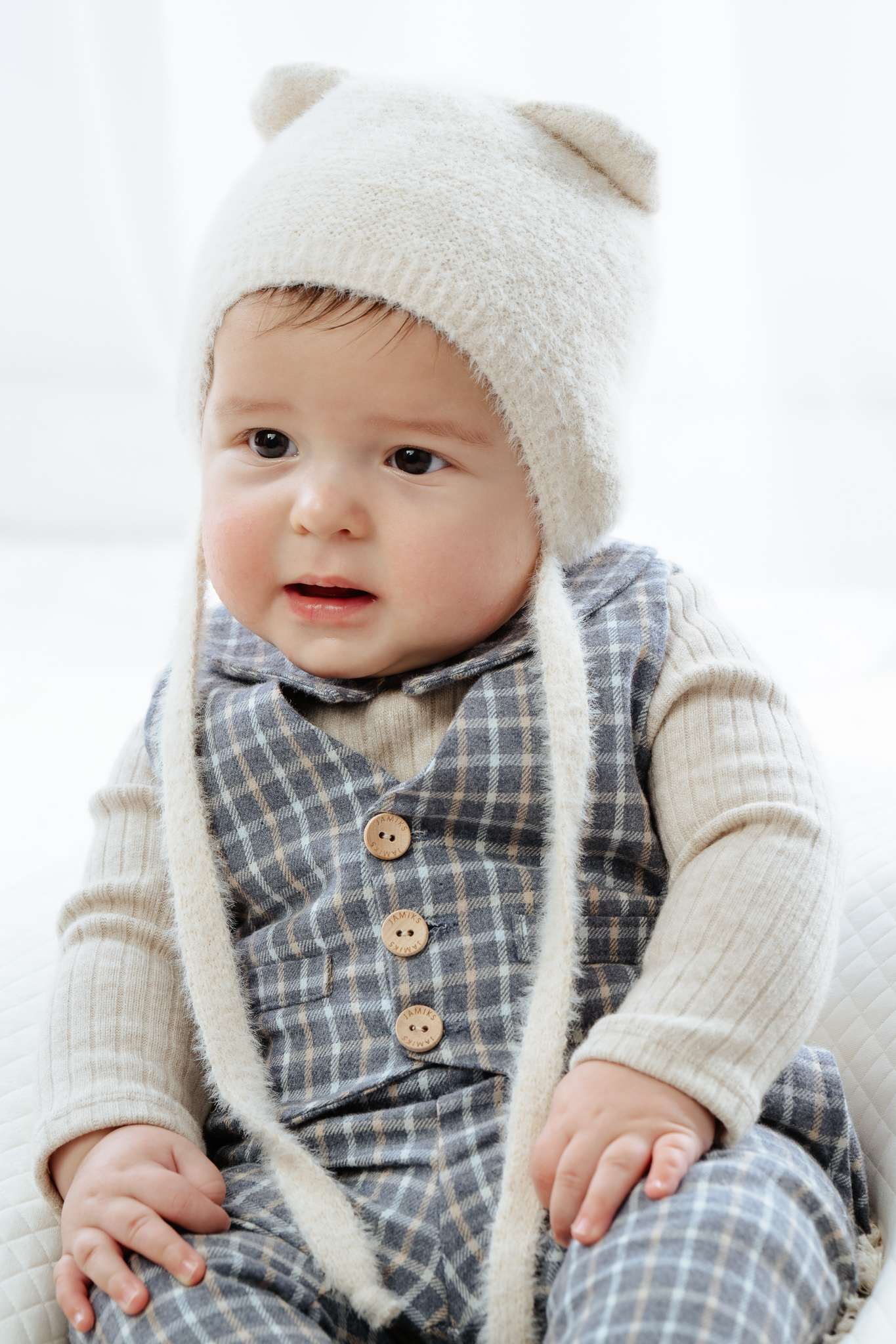 Czapka zimowa DENBY dla dziecka z uszkami i wiązaniem pod szyją, miękka i przyjemna w dotyku, z delikatną bawełnianą podszewką – uroczy i praktyczny dodatek na zimę.