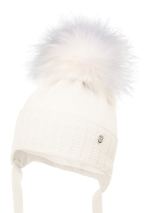 Czapka dla dziecka na zimę JUPITER z pomponem biały