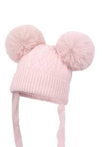 Czapka dla dziewczynki MISURI na zimę z dwoma pomponami jasny róż