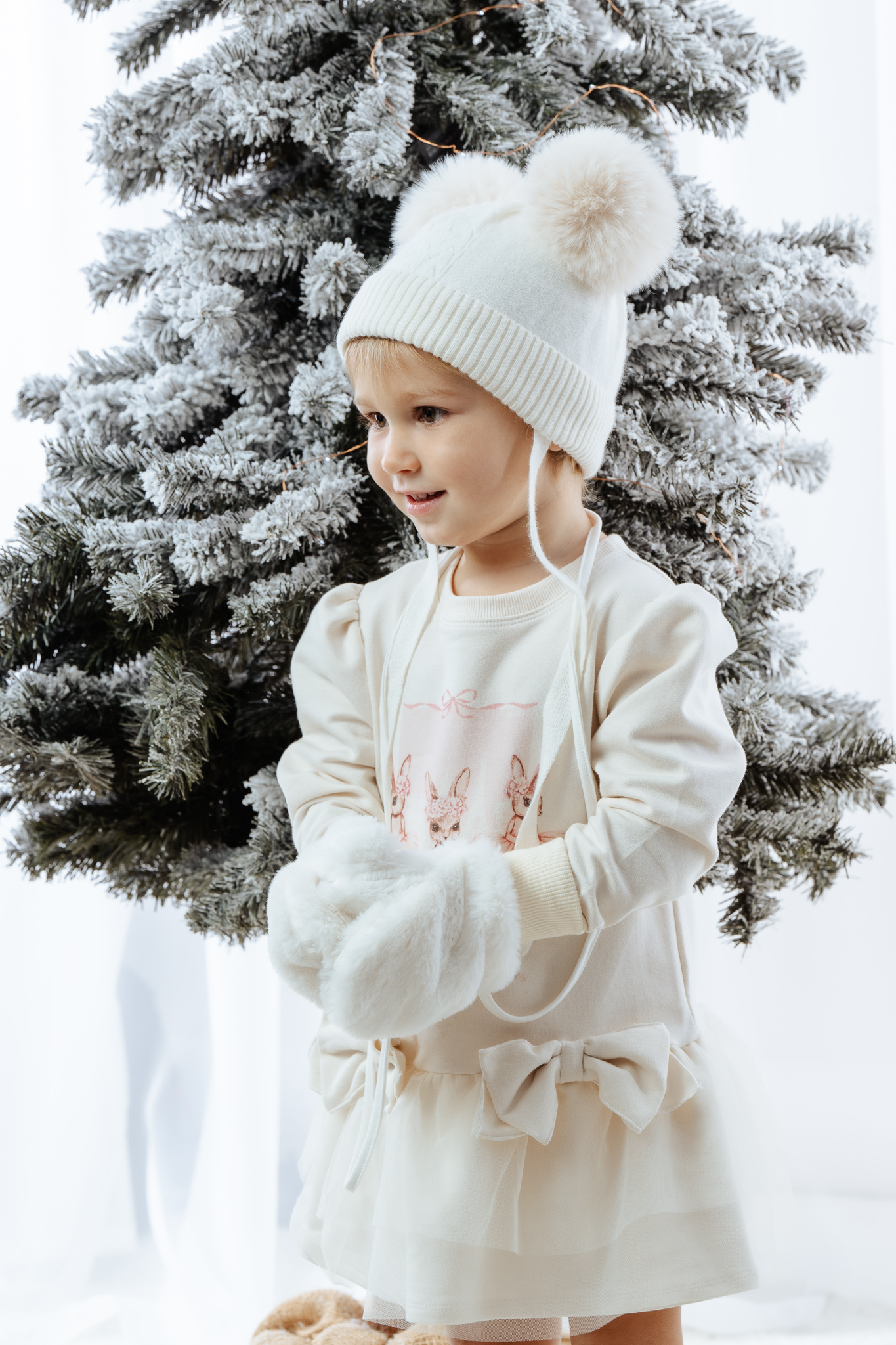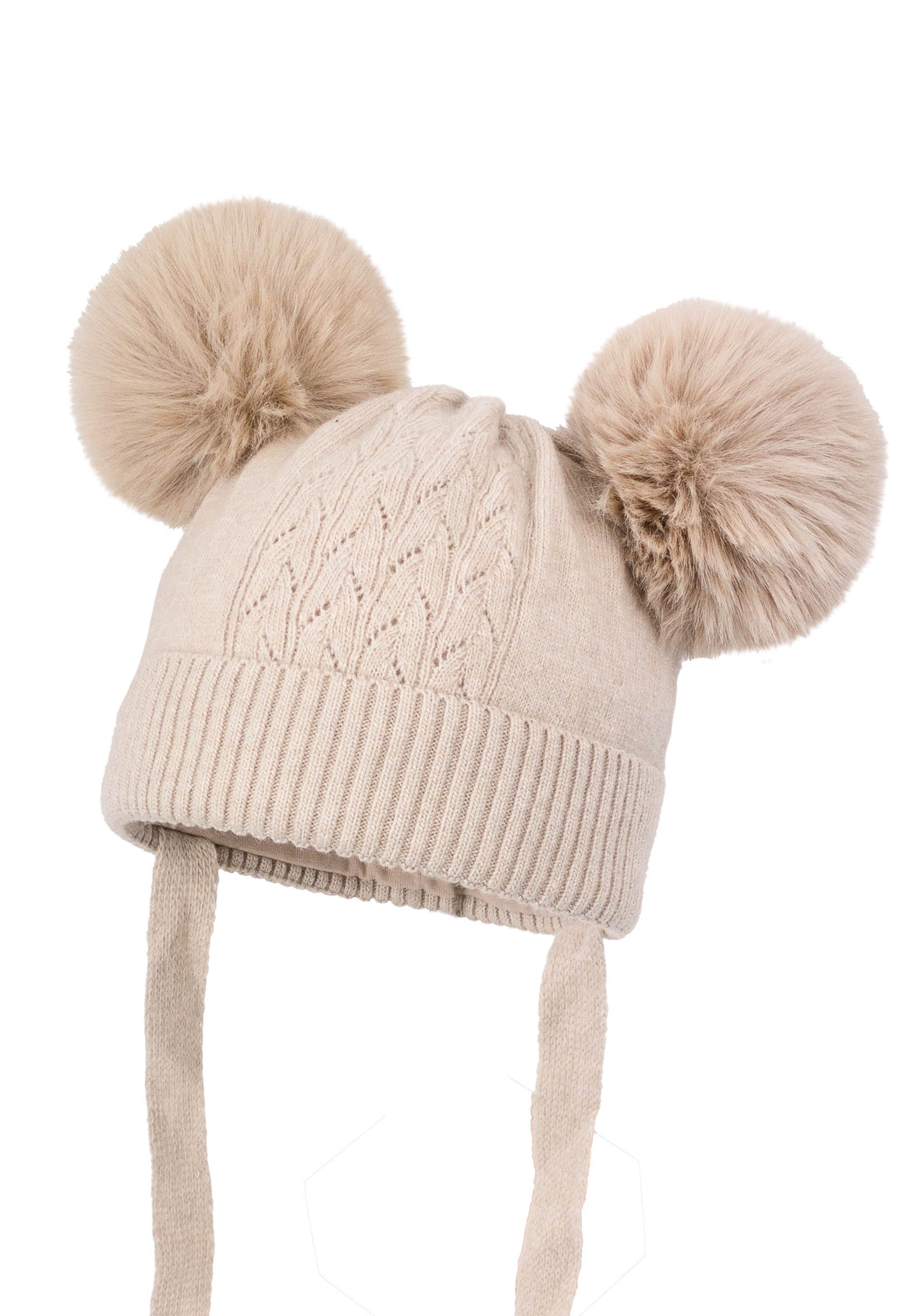 Czapka dla dziewczynki MISURI na zimę z dwoma pomponami latte