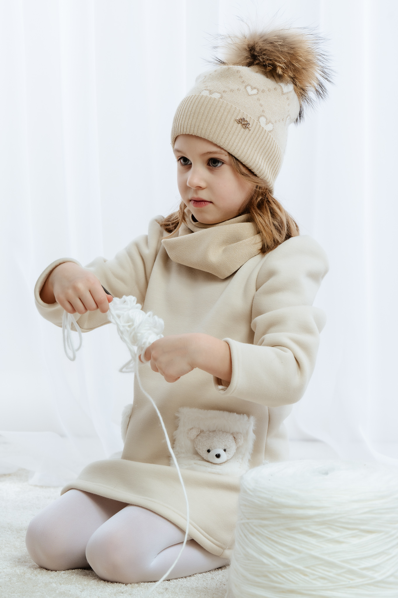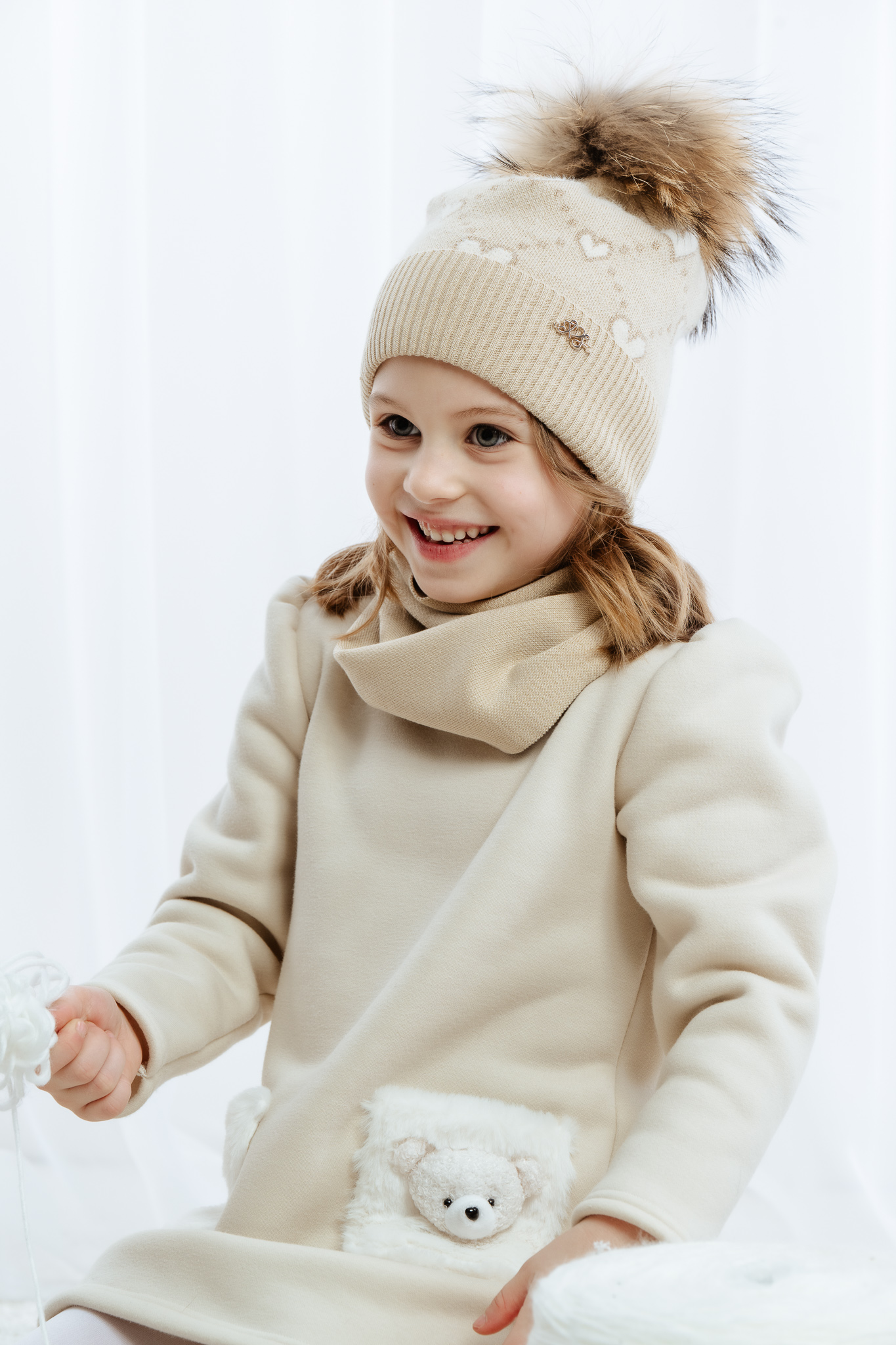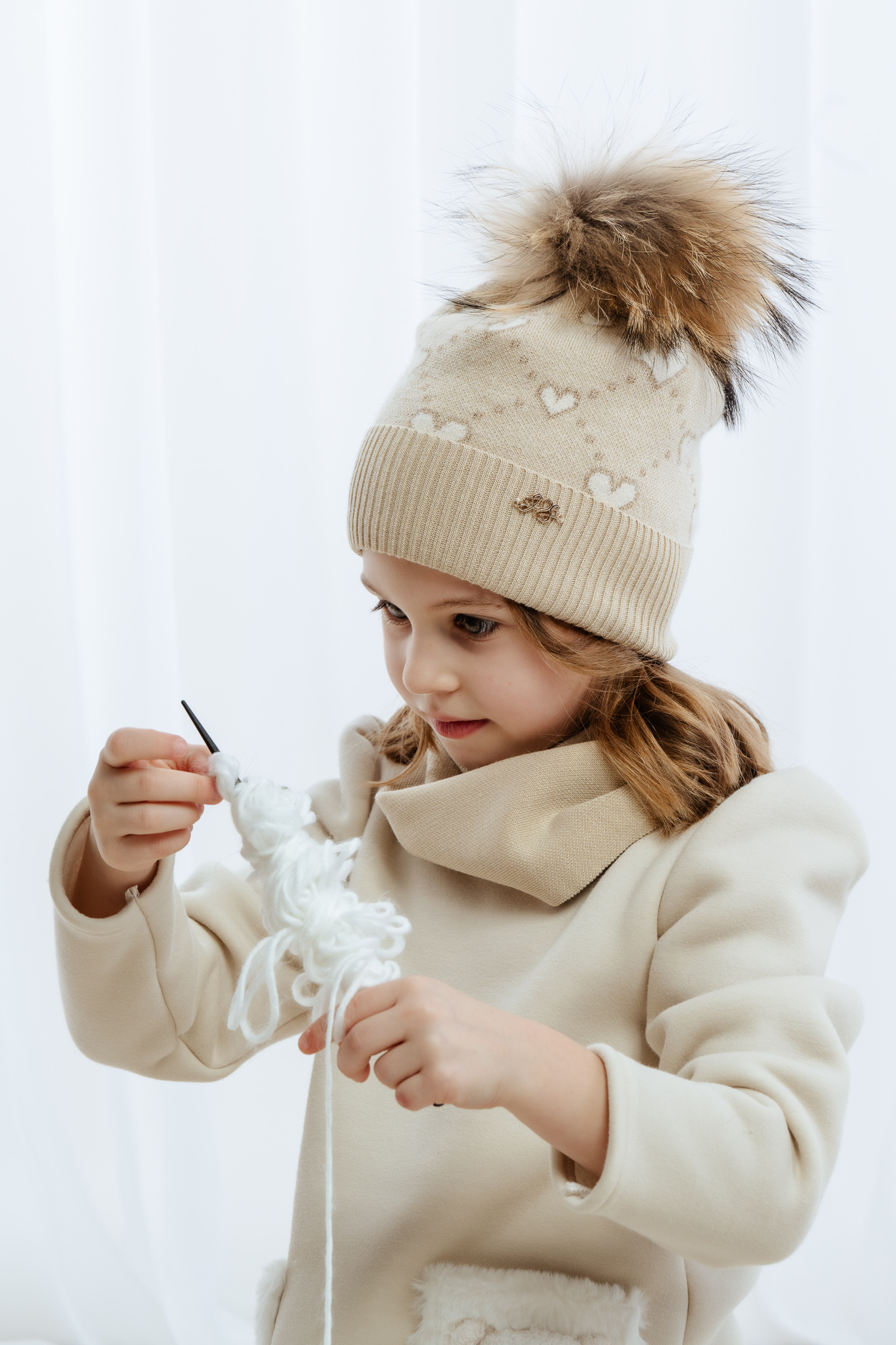 Model ozdobiony jest wzorem w serduszka oraz sztucznym pomponem, a subtelna połyskująca nitka nadaje czapce eleganckiego i dziewczęcego charakteru. Czapka MARILLA idealnie sprawdzi się podczas spacerów i zimowych zabaw na świeżym powietrzu, łącząc funkcjonalność z uroczym wyglądem.