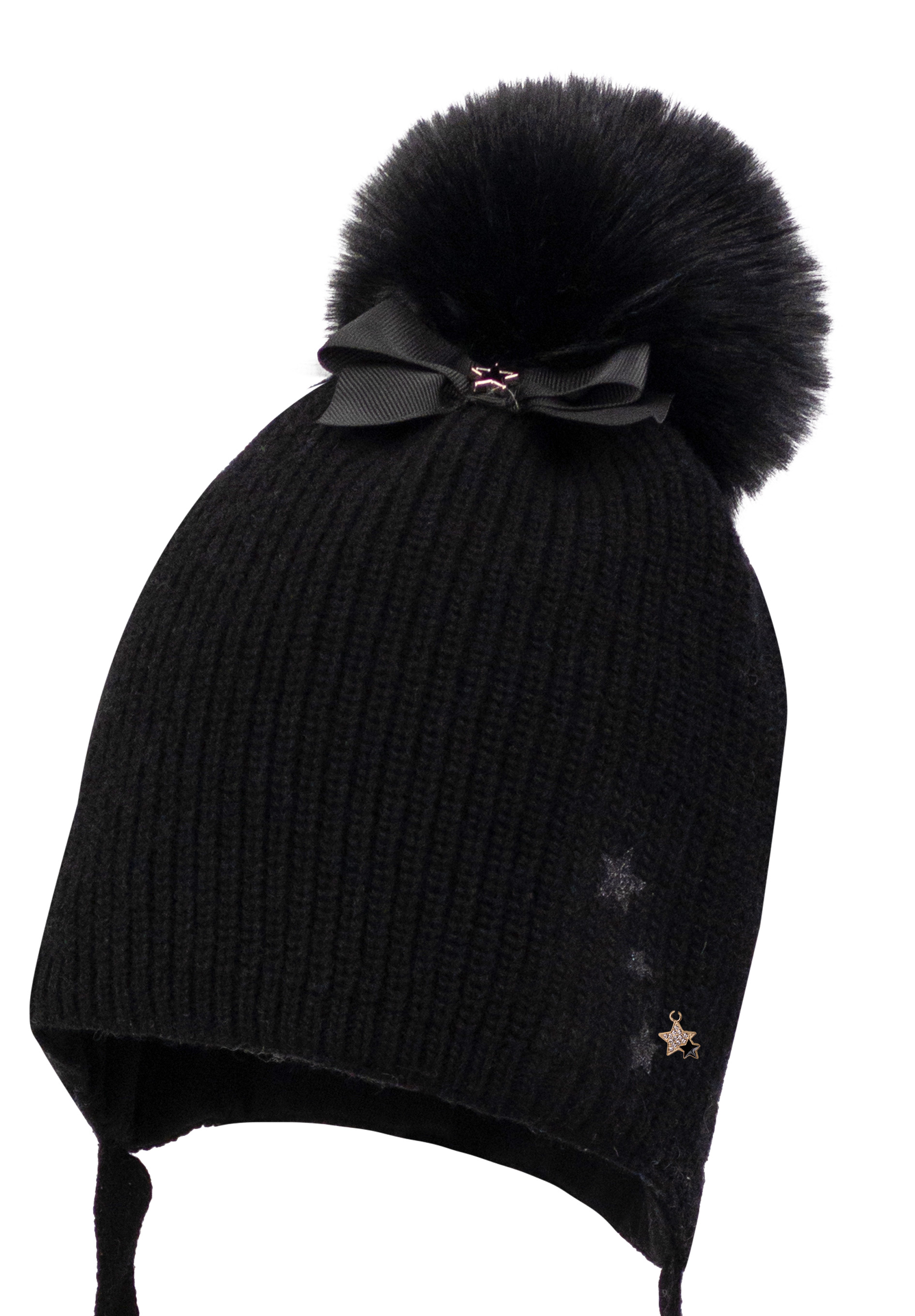 Czapka dla dziewczynki na zimę z domieszką wełny i kaszmiru MARCELLE z pomponem czarny