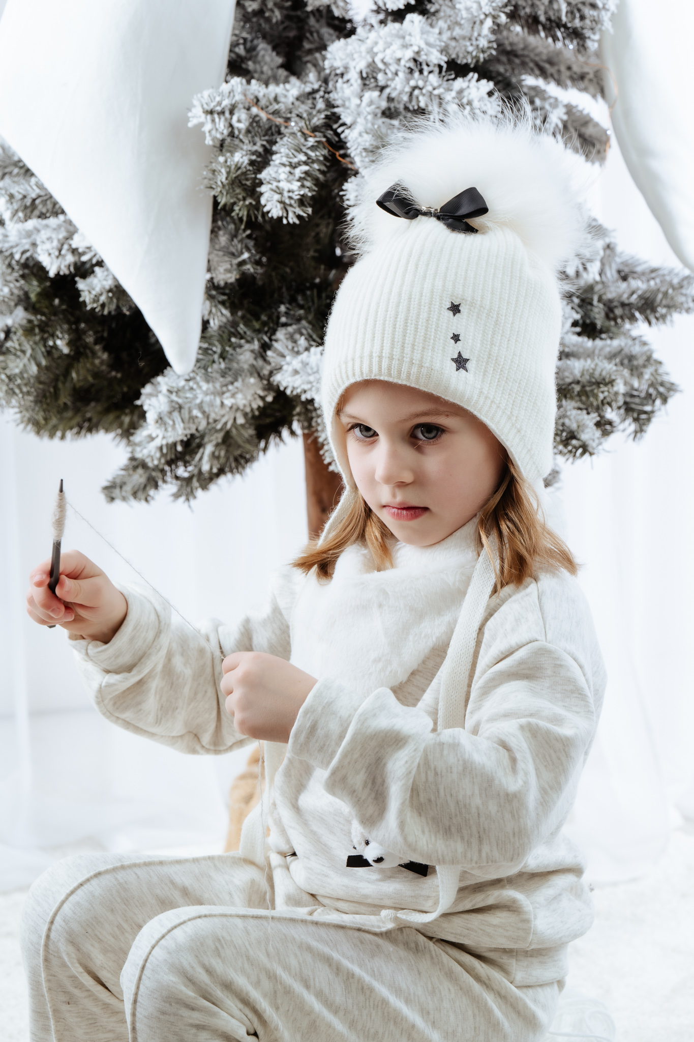 Pompon ozdobiony kokardą nadaje czapce MARCELLE dziewczęcego i dekoracyjnego charakteru, a praktyczne wiązanie pod szyją gwarantuje stabilne dopasowanie i ochronę przed zimnem. Model sprawdzi się podczas spacerów i zimowych zabaw na świeżym powietrzu.