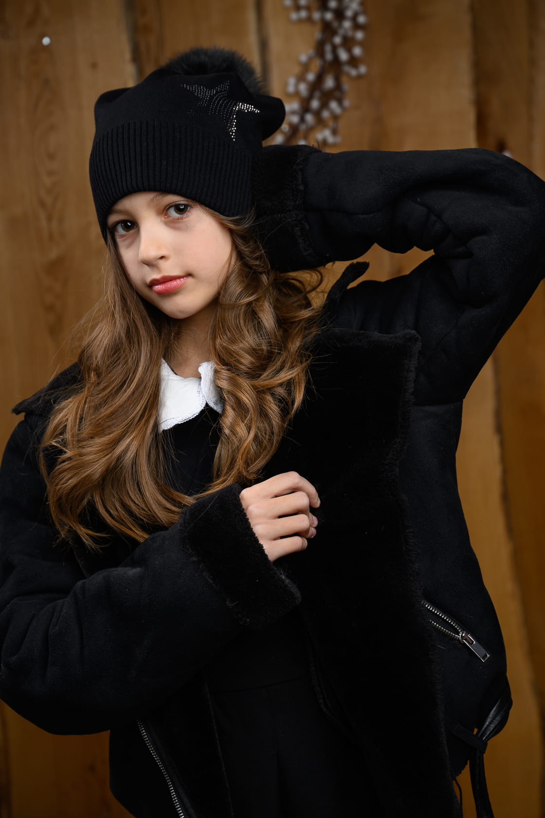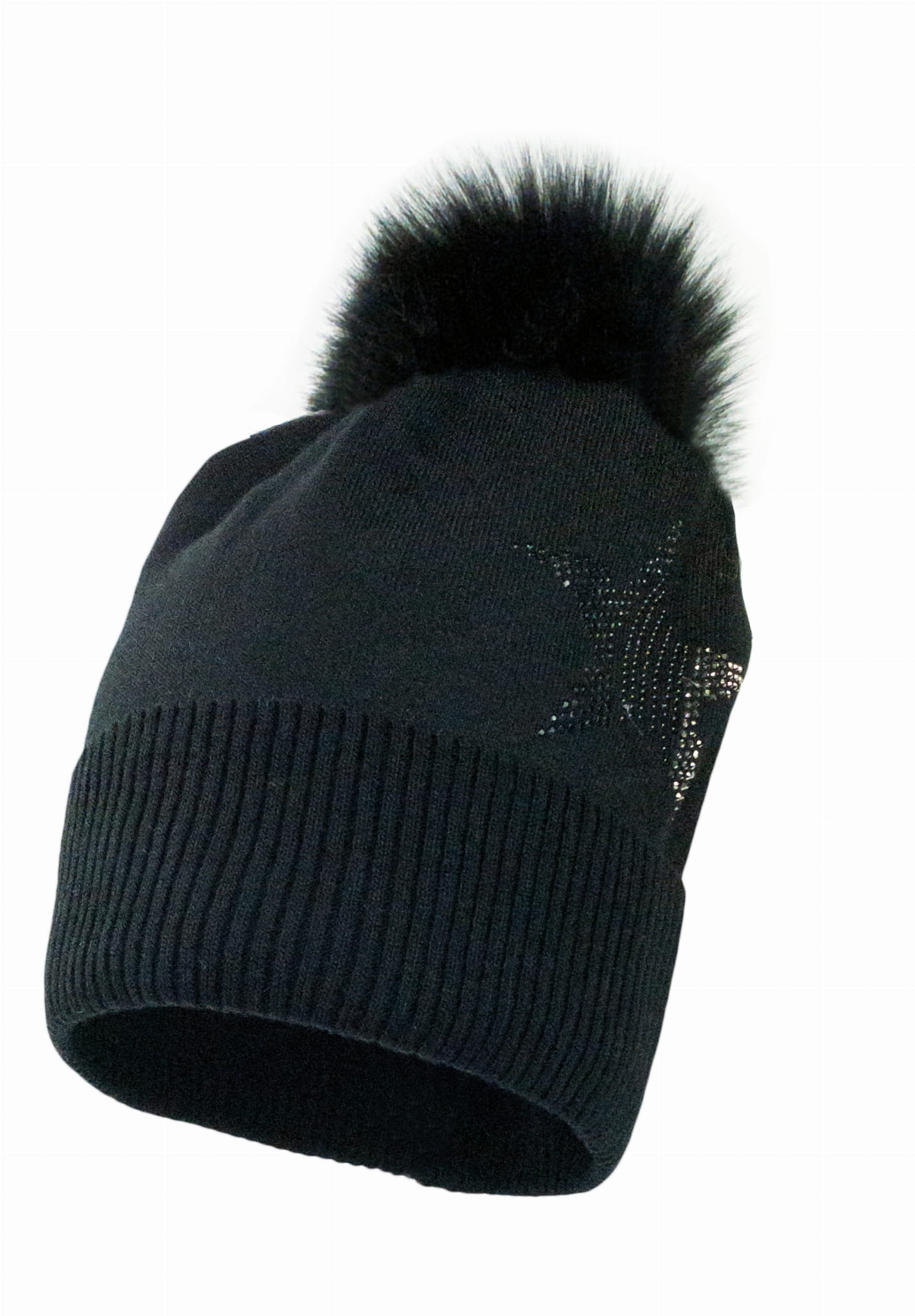 Czapka mama & córka SOLANGE z eko pomponem czarny
