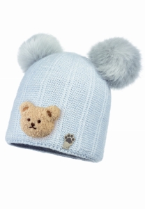 Czapka na zimę z misiem FRANCO Eko-pompon Błękit