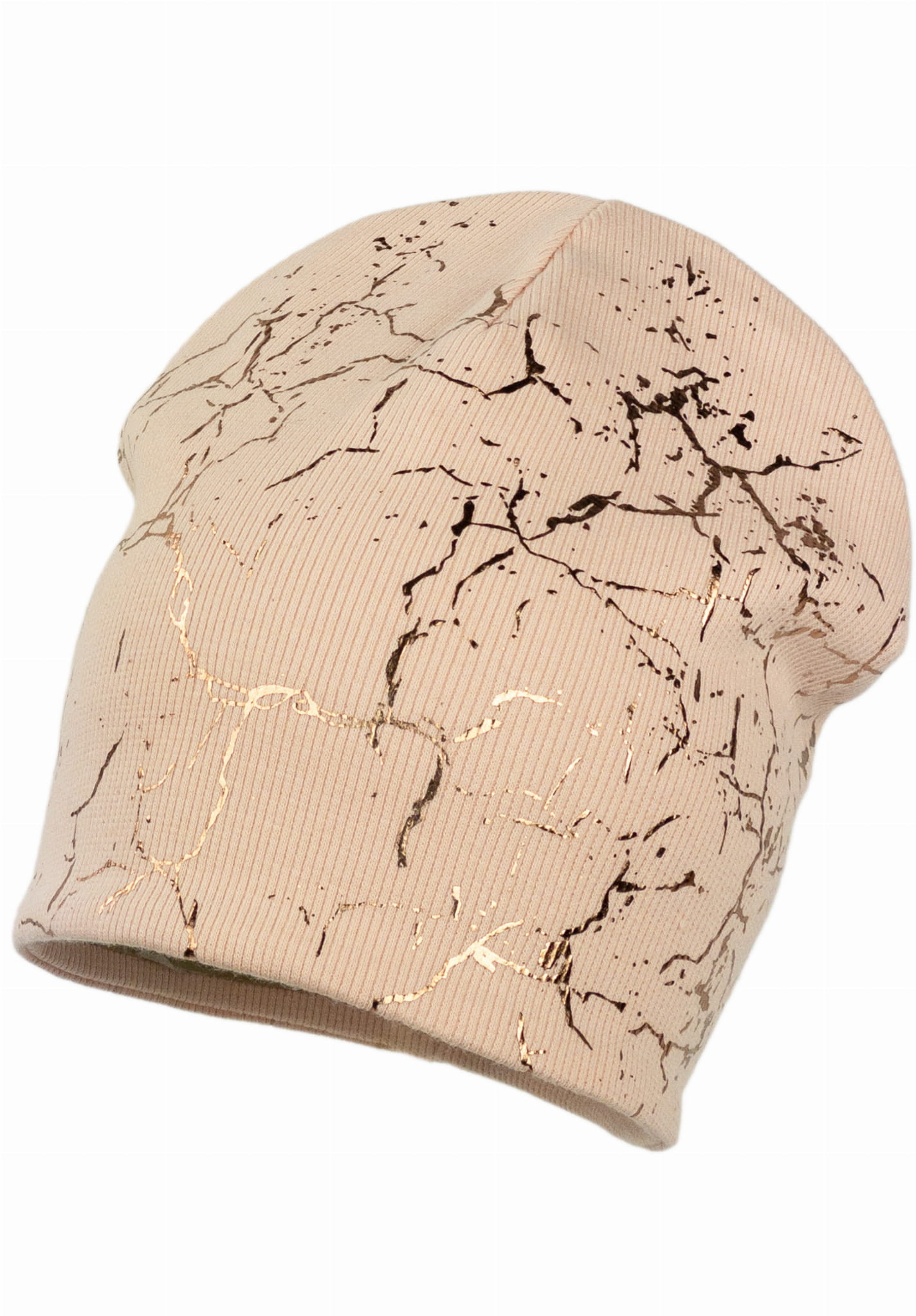 Pokryta metalicznym nadrukiem na wzór marmuru - jest unikatowa, wyróżnia się spośród innych jesiennych czapek.