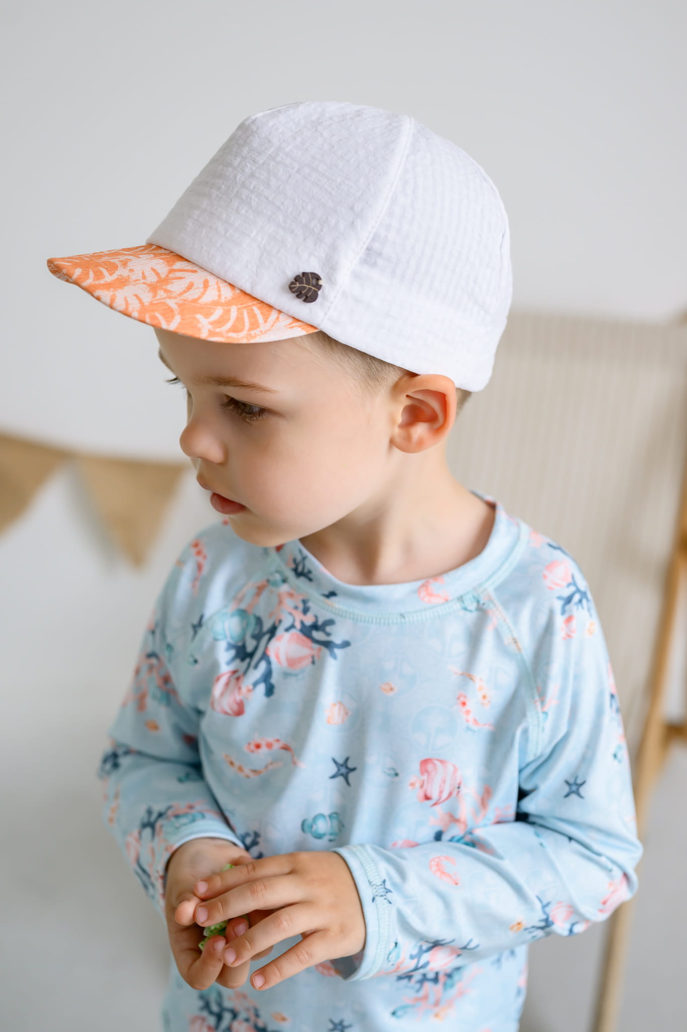 Bawełniana czapka z miękkim daszkiem. Idealna dla mniejszych dzieci. Materiał nie gniecie się.