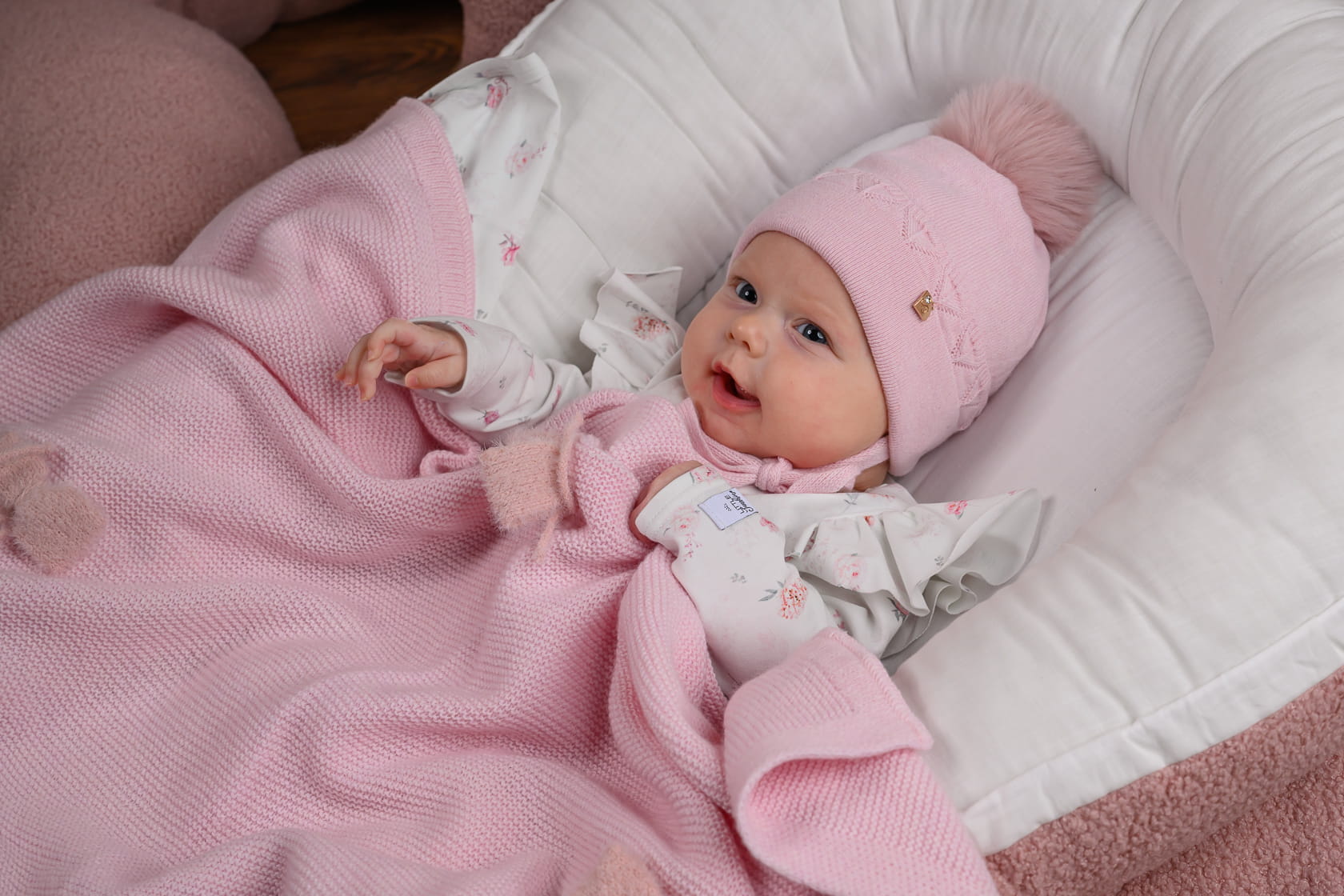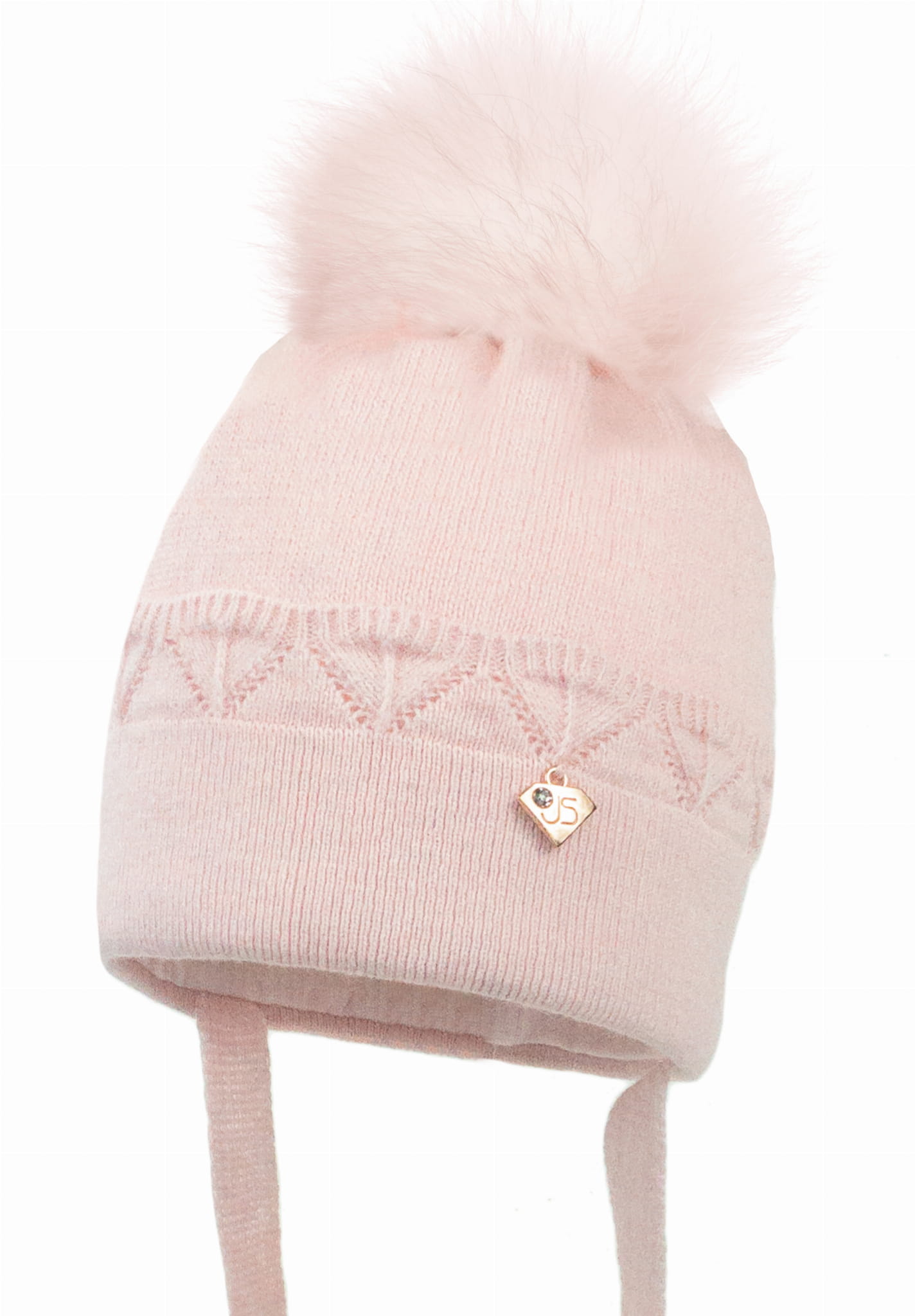 Czapka z dodatkiem wełny DONCIA dla dziewczynki eko pompon jasny róż