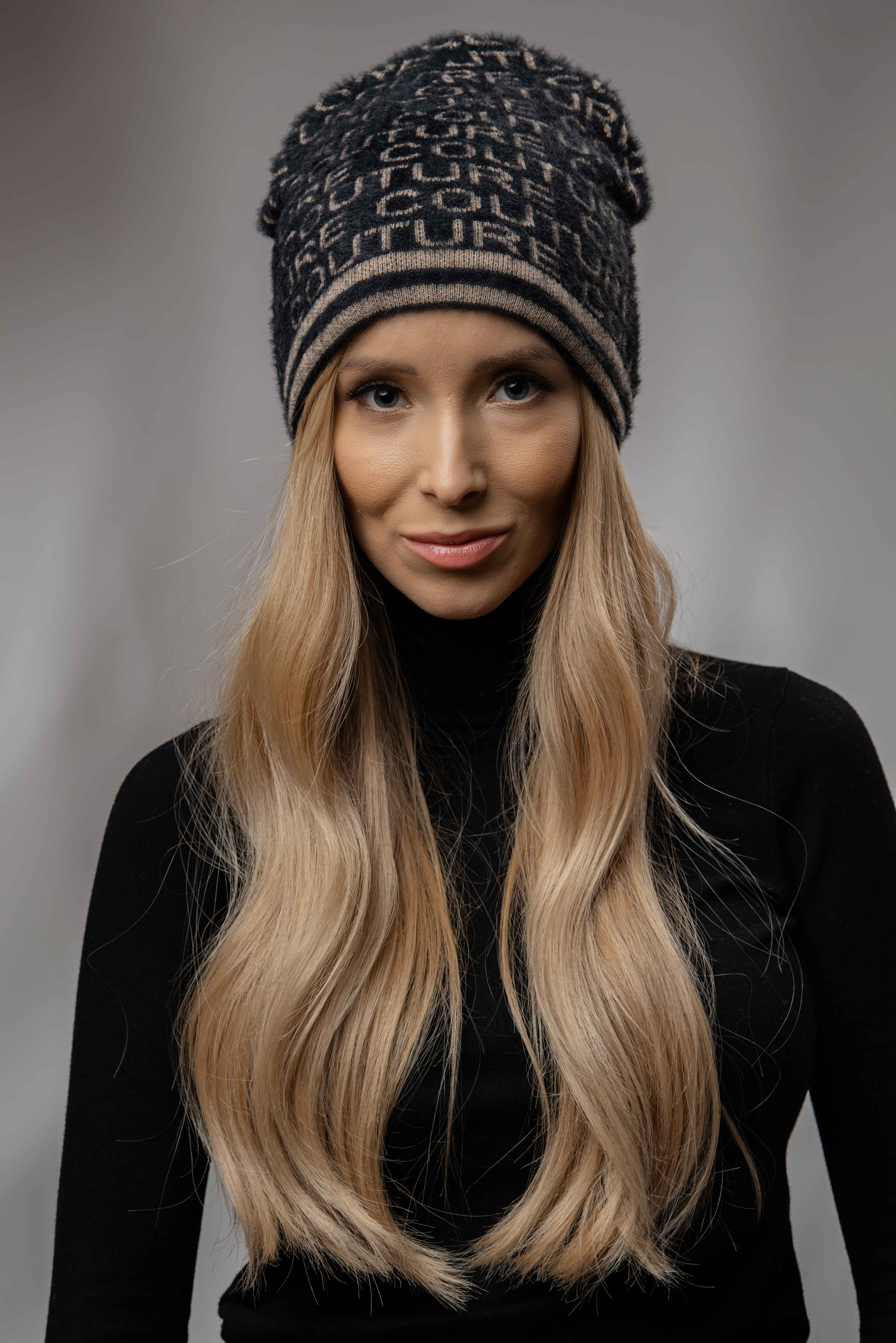 Ciepła czapka wykonana z przędzy przypominającej włos alpaki.