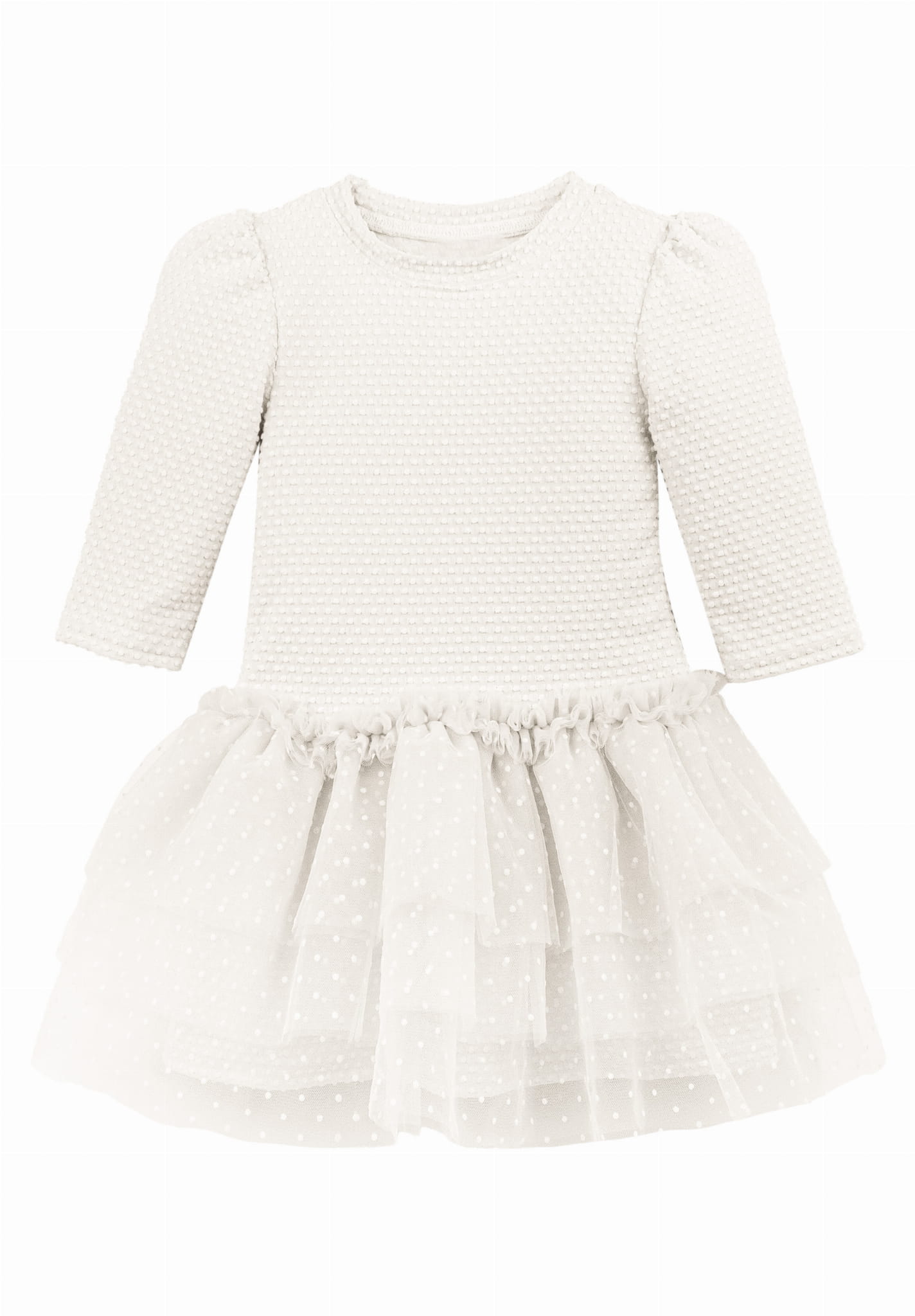 Dzianinowa sukienka z tiulem POLIANA ekri