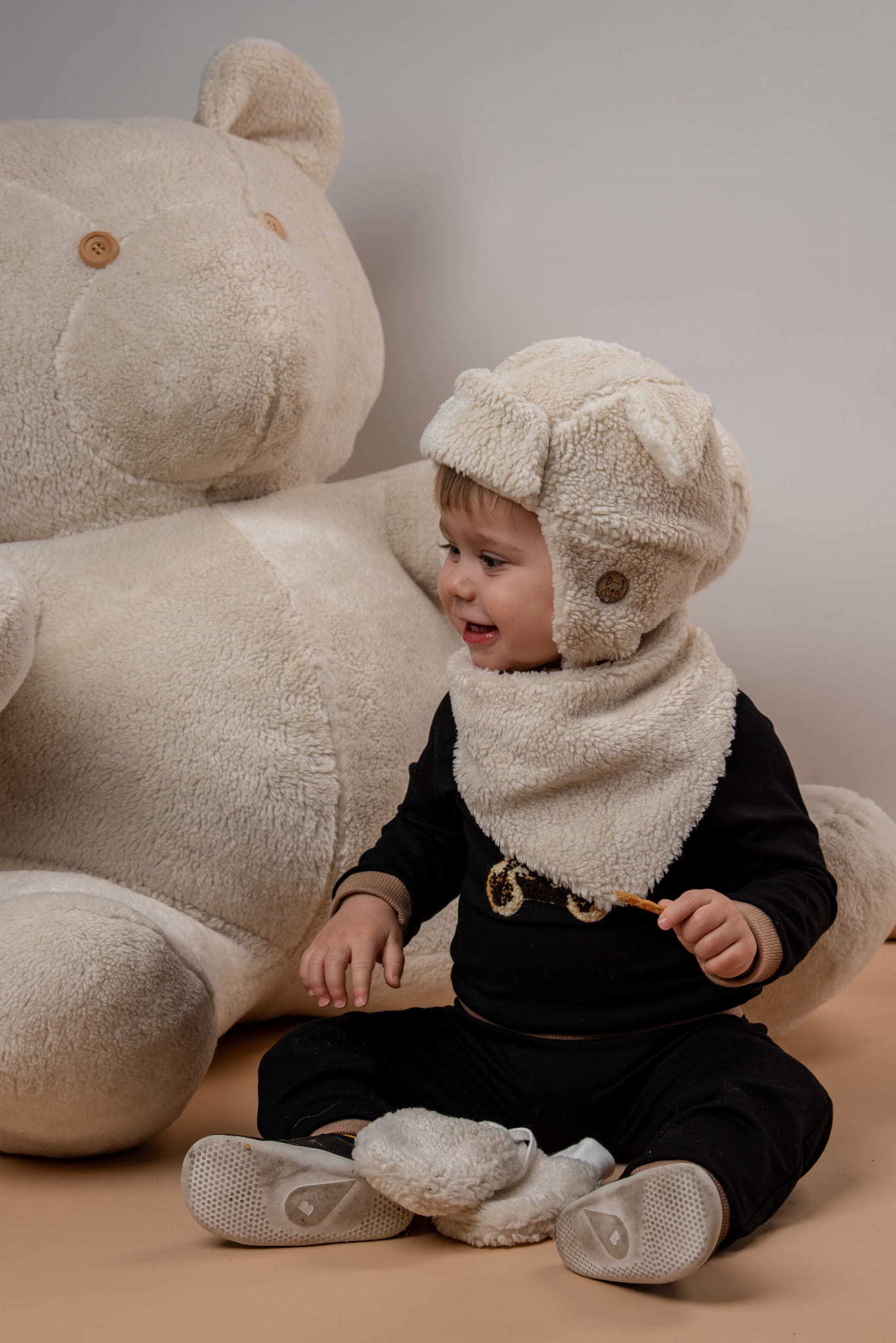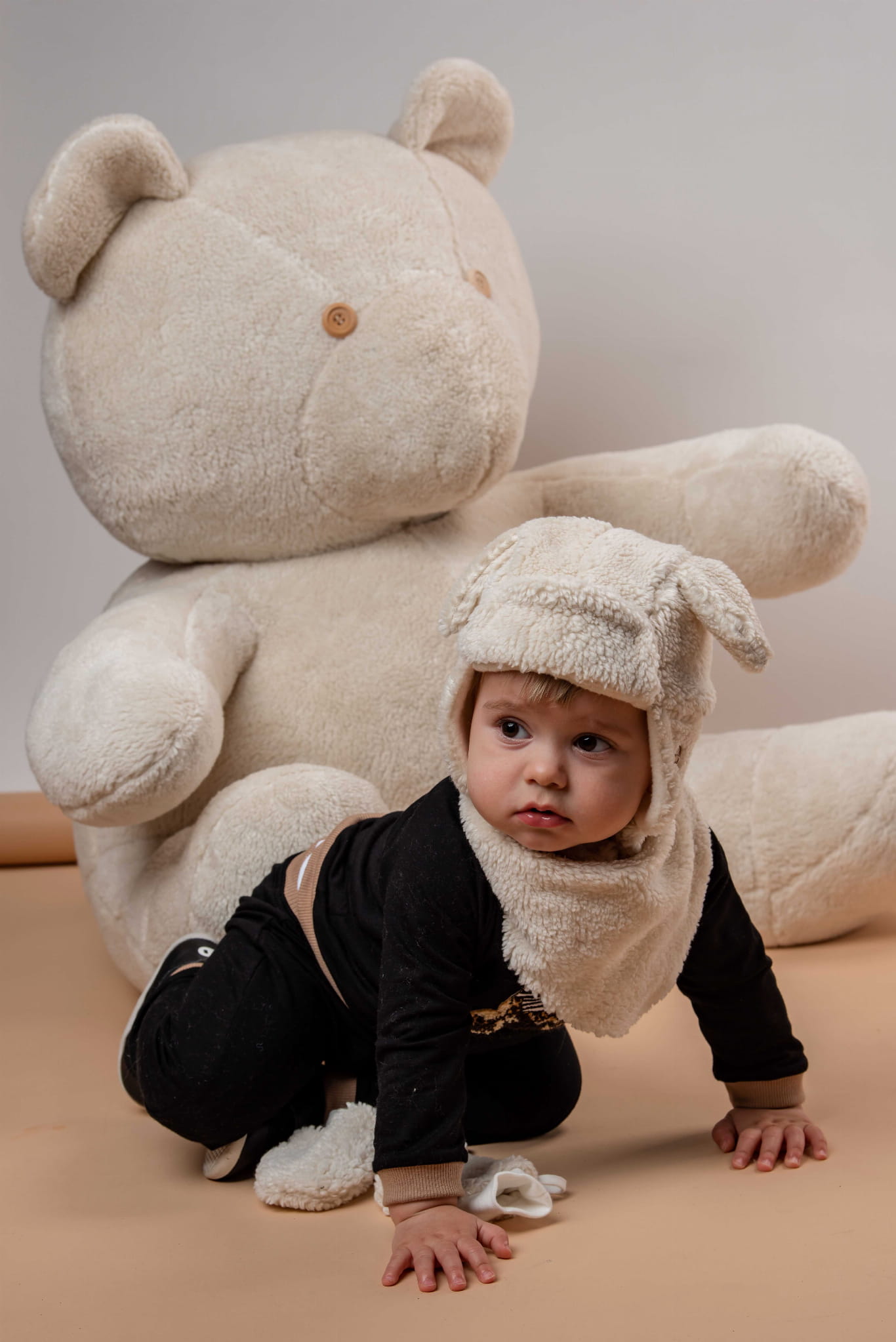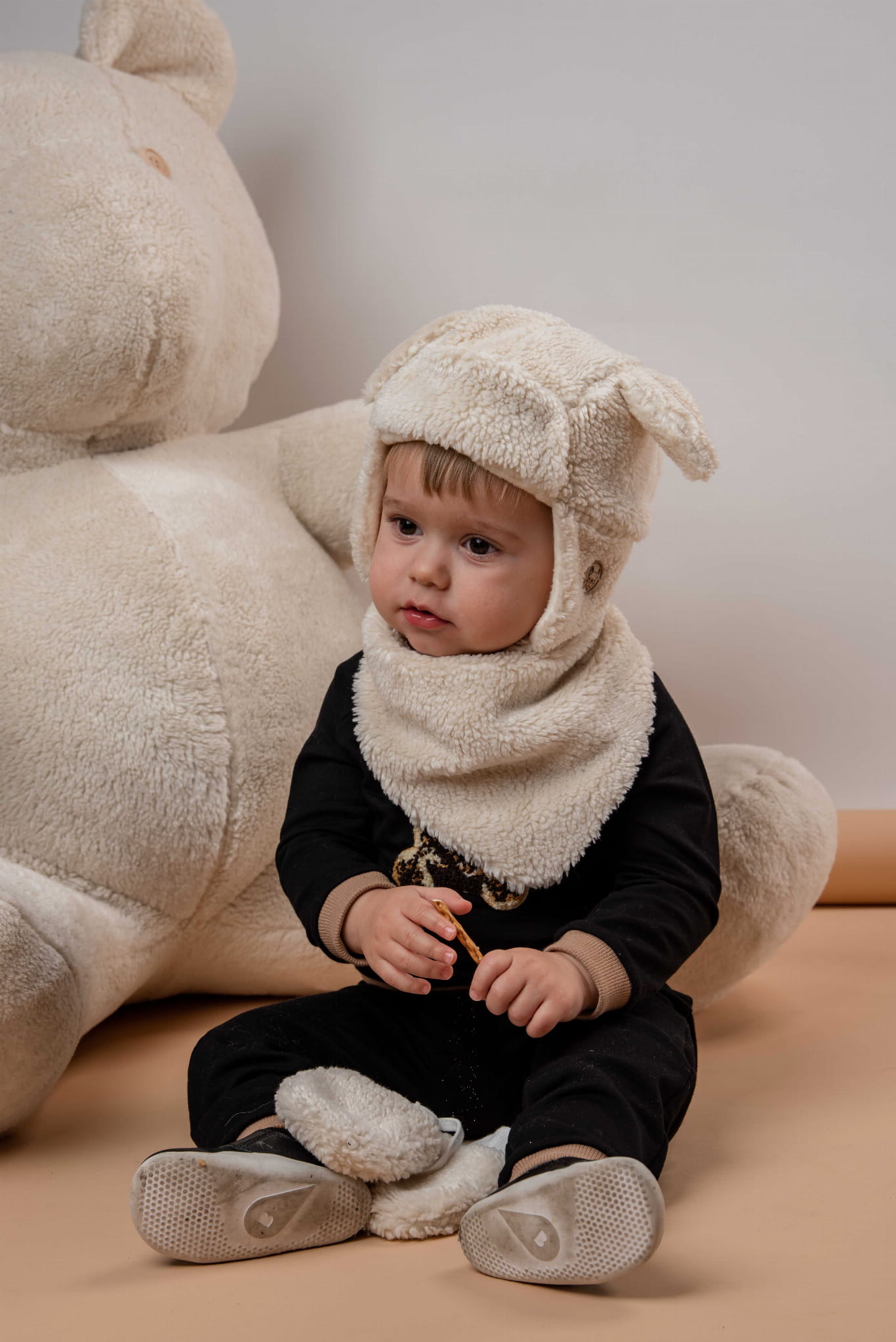 Wyjątkowa i bardzo ciepła chustka wykonana z dzianiny przypominającej baranka.