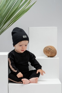 Klasyczna, bawełniana czapeczka z materiału typu prążek, bardzo modnego w tym sezonie.