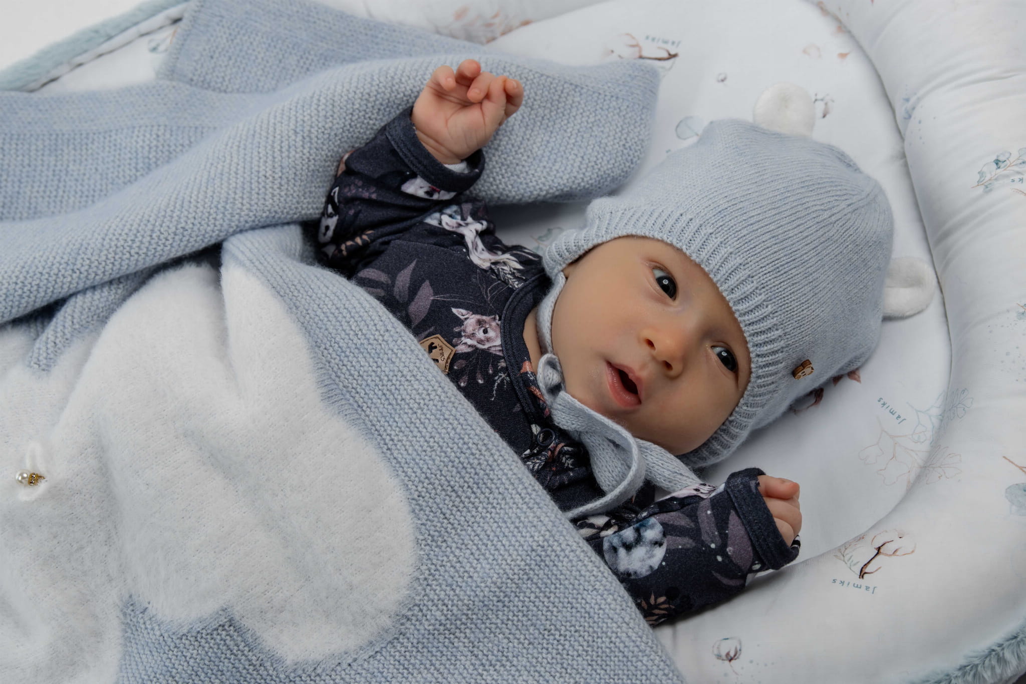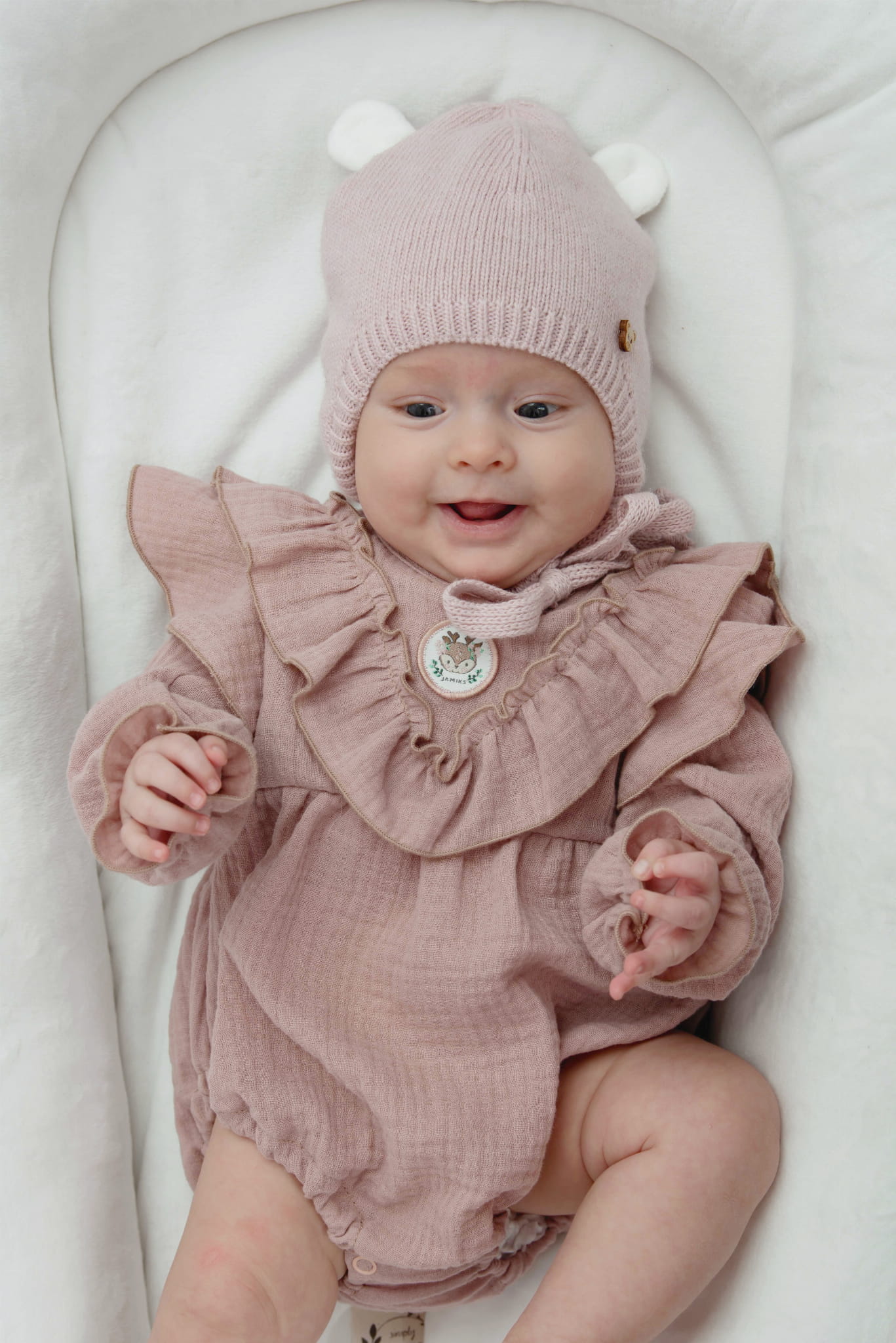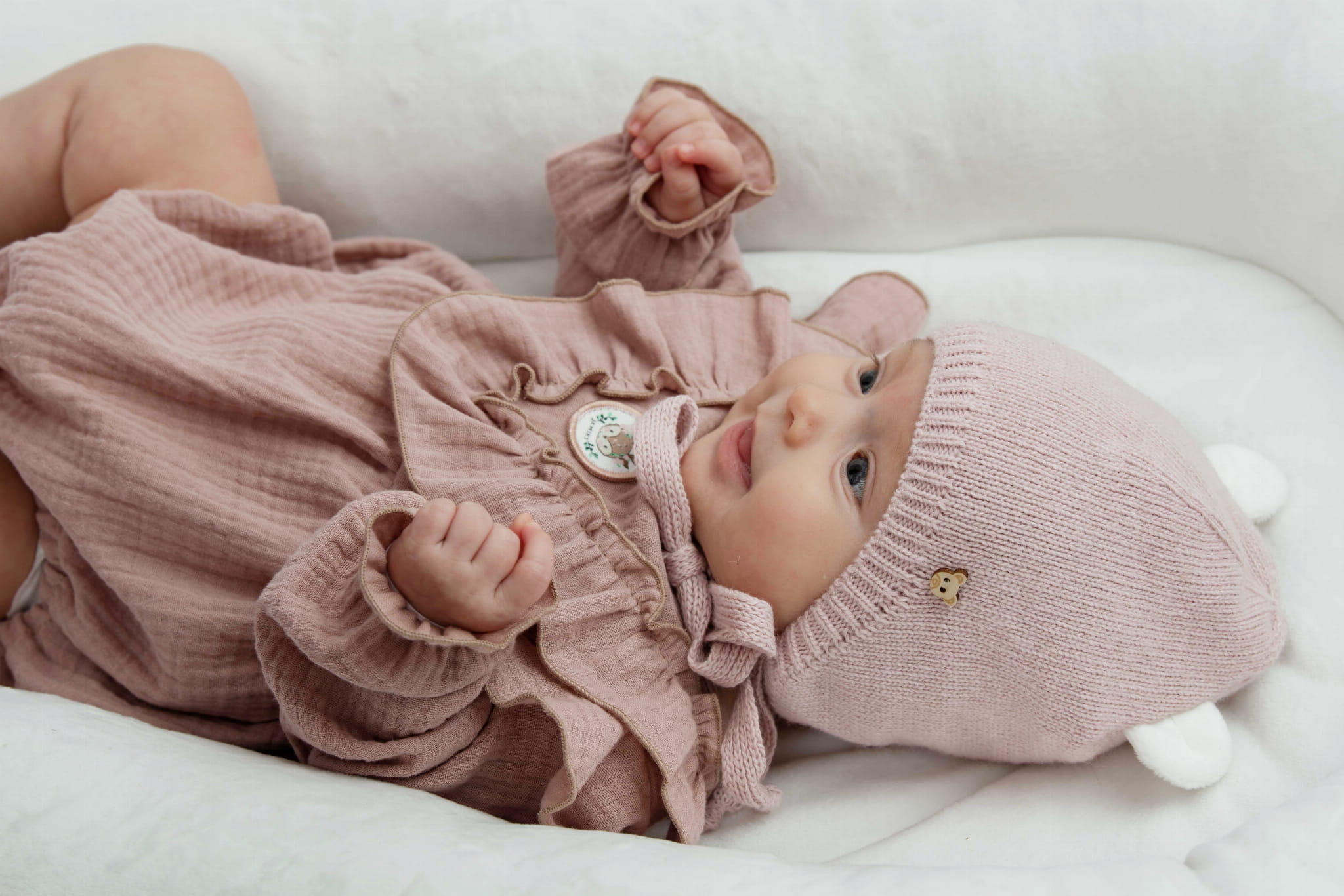 Ciepła czapka dla małych dzieci zdobiona uszkami.